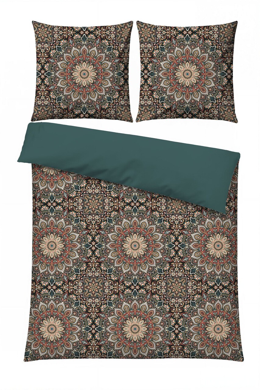 Lenjerie de pat dubla Super King (EU) (IT), 3 piese, L'essentiel Maison, Ornate, Albastru petrol