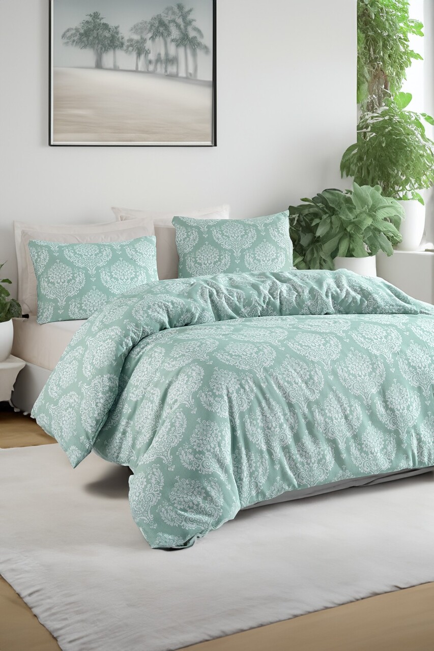 Lenjerie de pat dubla Super King (EU) (IT), 3 piese, L'essentiel Maison, Post, Apa Verde