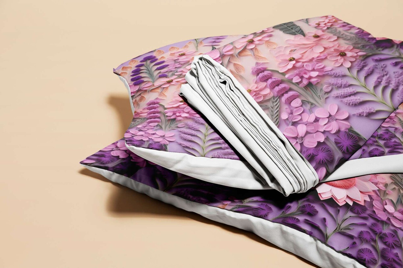 Lenjerie de pat dubla Super King (EU) (IT), 3 piese, L'essentiel Maison, FLW_DVT25-32, Multicolor