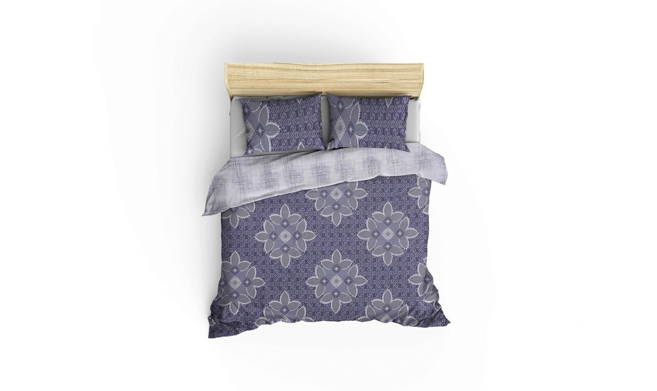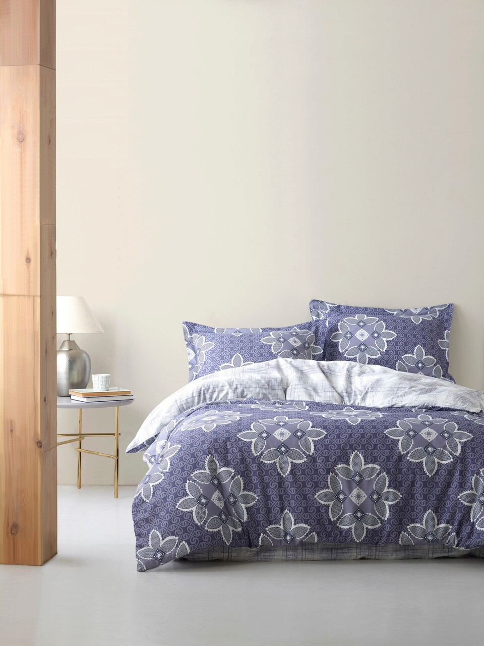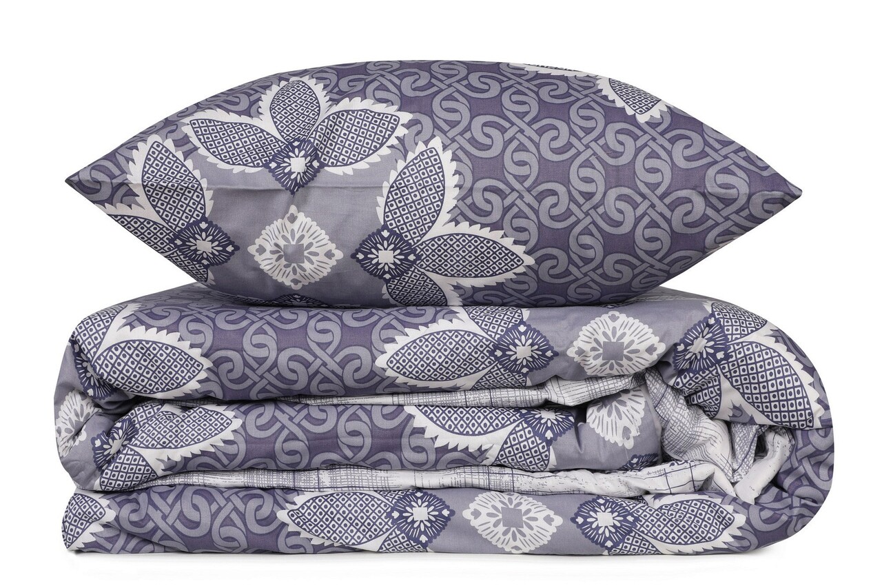 Lenjerie de pat dubla Super King (EU) (IT), L'essentiel Maison, Average, Albastru închis / Gri / Alb