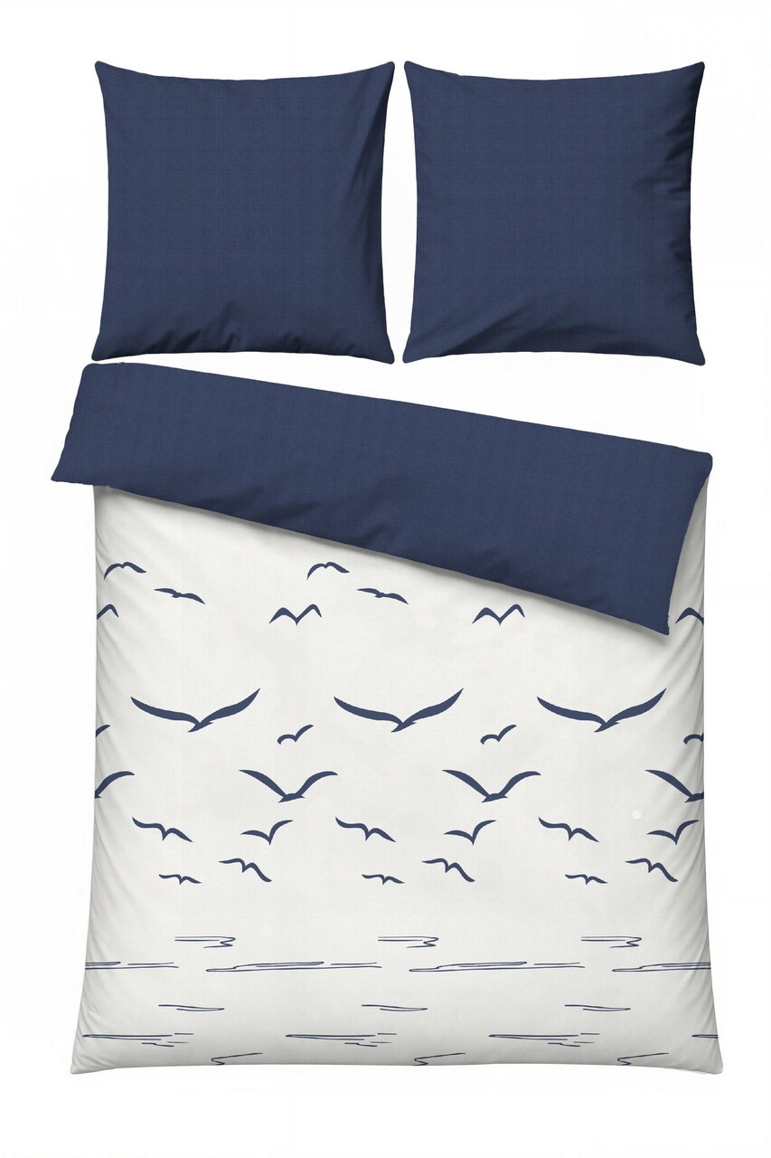 Lenjerie de pat dubla Super King (EU) (IT), L'essentiel Maison, Larum, Albastru inchis/Alb
