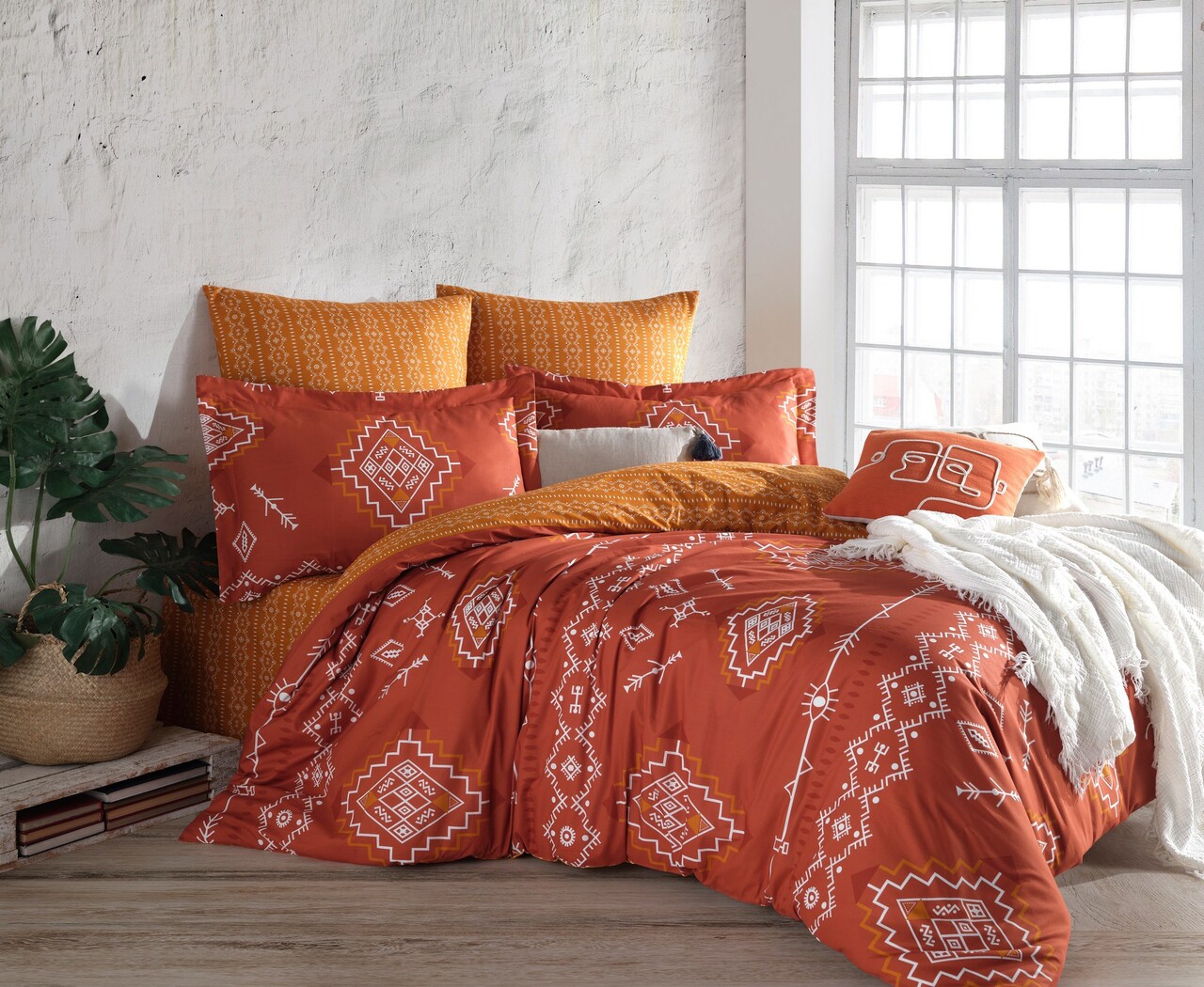 Lenjerie de pat dubla Super King (EU) (IT), L'essentiel Maison, Talas, Portocaliu/Alb