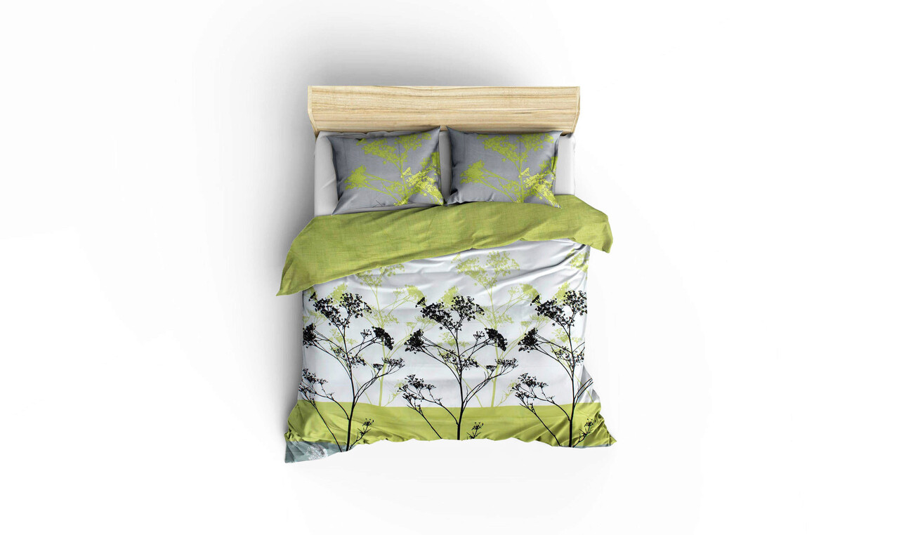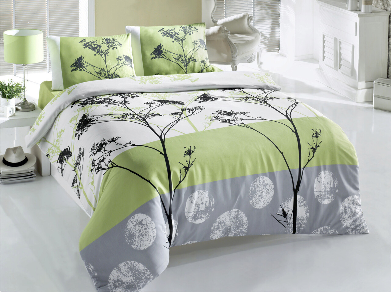 Lenjerie de pat dubla Super King (FR), 3 piese, Blezza - Green v2, Victoria, 65% bumbac/35% poliester