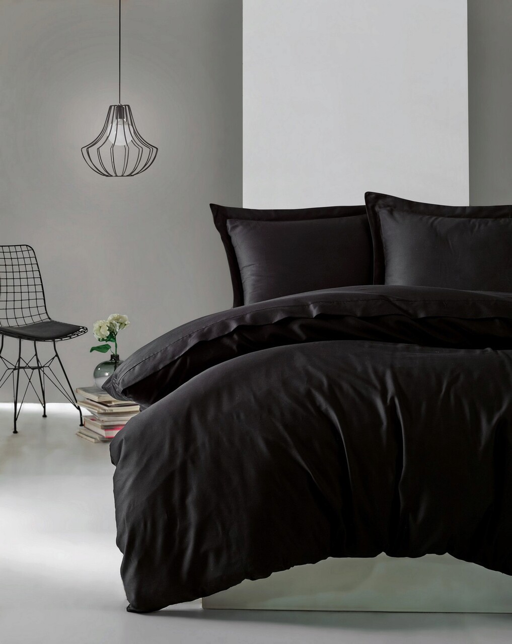 Lenjerie de pat dubla Super King (FR), 3 piese, Elegant - Black, Cotton Box, Bumbac Satinat