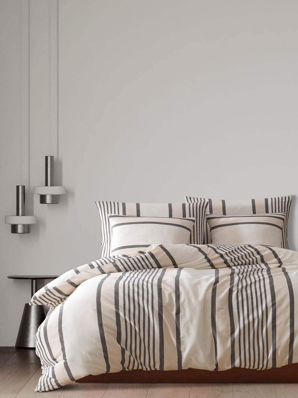 Lenjerie de pat dubla Super King (FR), 3 piese, L'essentiel Maison, Astana, Bumbac;Poliester, Bej/Negru
