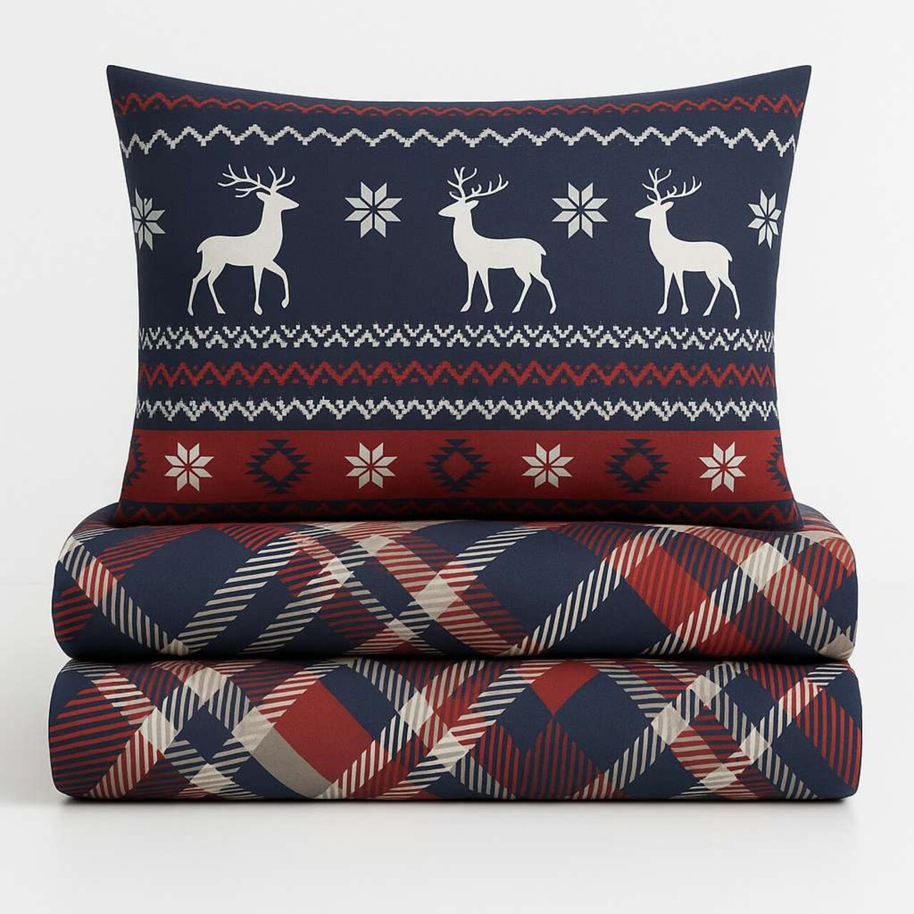 Lenjerie de pat dubla Super King (FR), 3 piese, L'essentiel Maison, Chr-Coverset-2, Roșu / Alb / Albastru închis / Gri