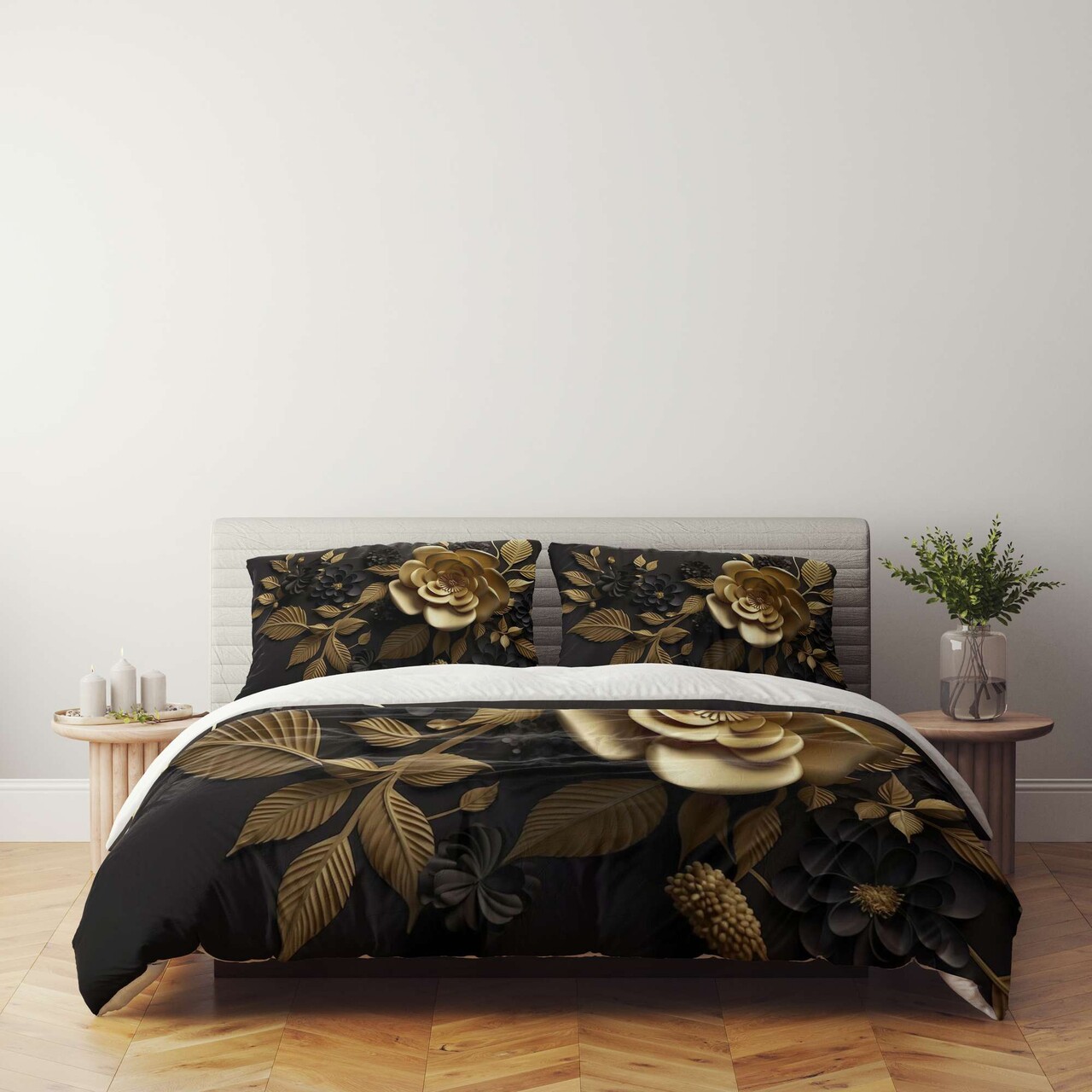 Lenjerie de pat dubla Super King (FR), 3 piese, L'essentiel Maison, FLW_DVT25-18, Multicolor