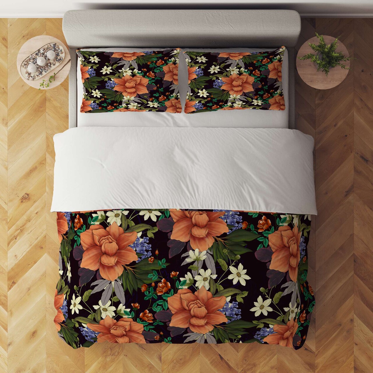 Lenjerie de pat dubla Super King (FR), 3 piese, L'essentiel Maison, FLW_DVT25-29, Multicolor
