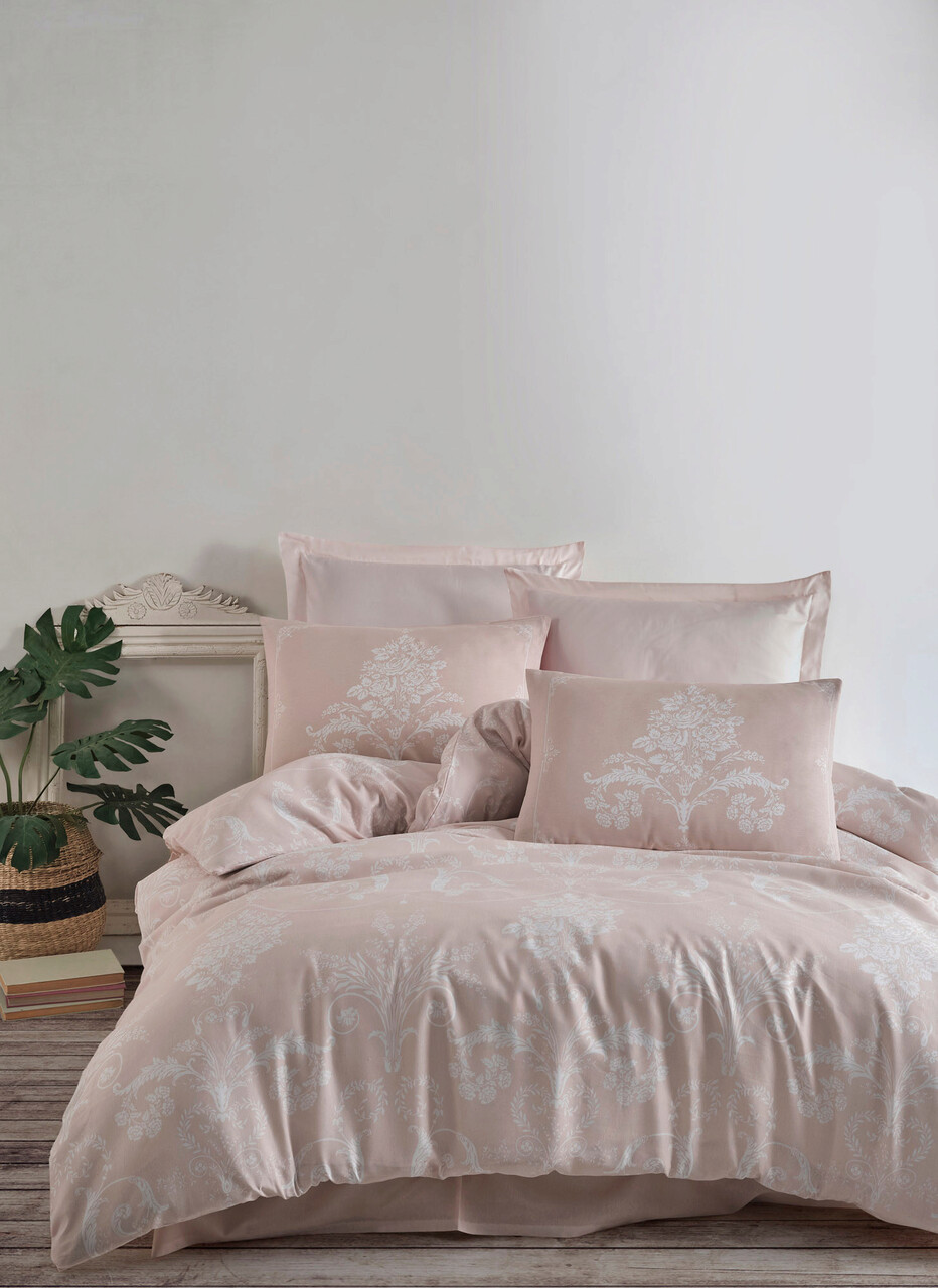 Lenjerie de pat dubla Super King (FR), 3 piese, L'essentiel Maison, Kraliçe, 65% bumbac/35% poliester, Nurca / alb