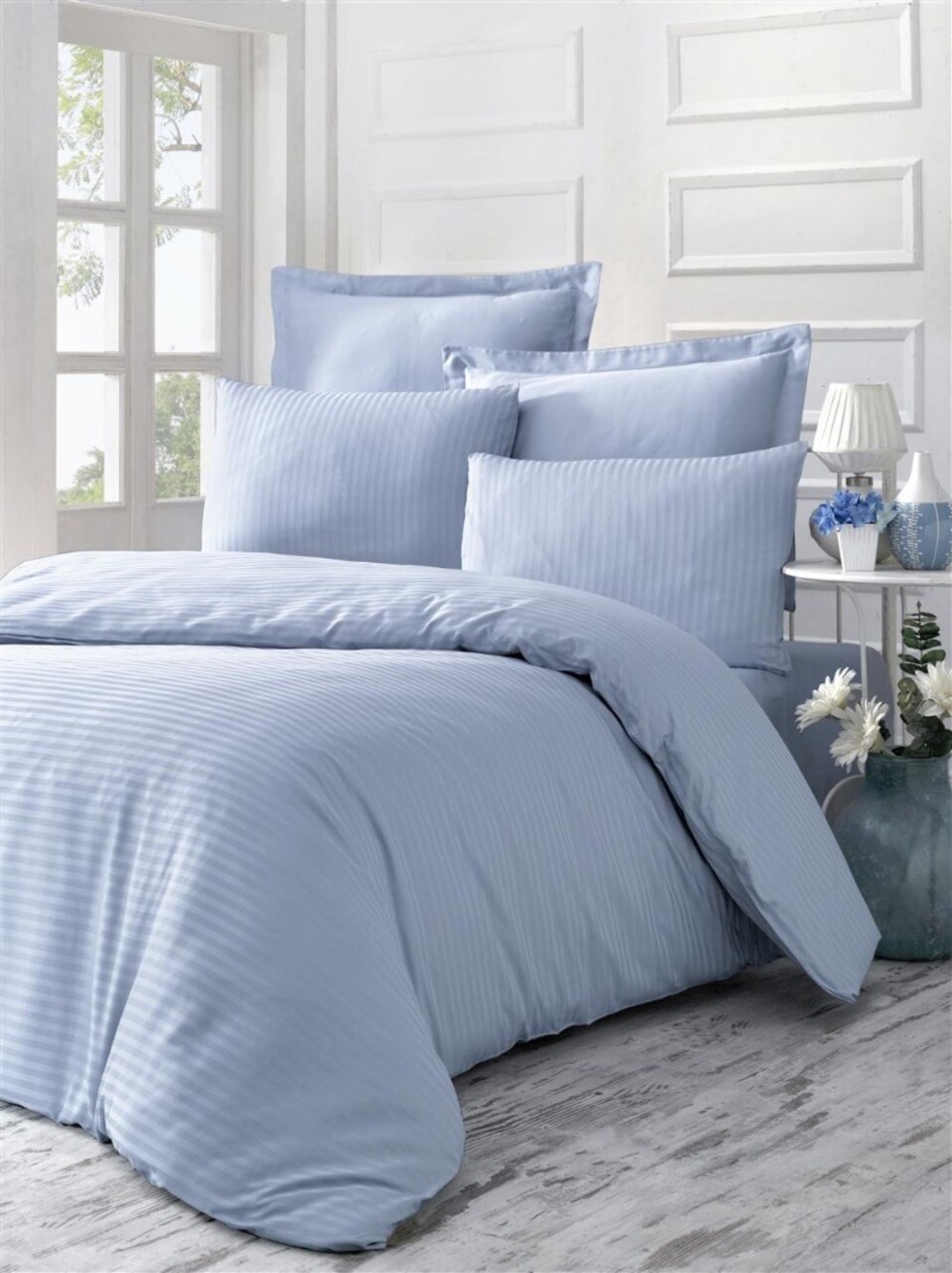 Lenjerie de pat dubla Super King (FR), 3 piese, L'essentiel Maison, Line, Albastru