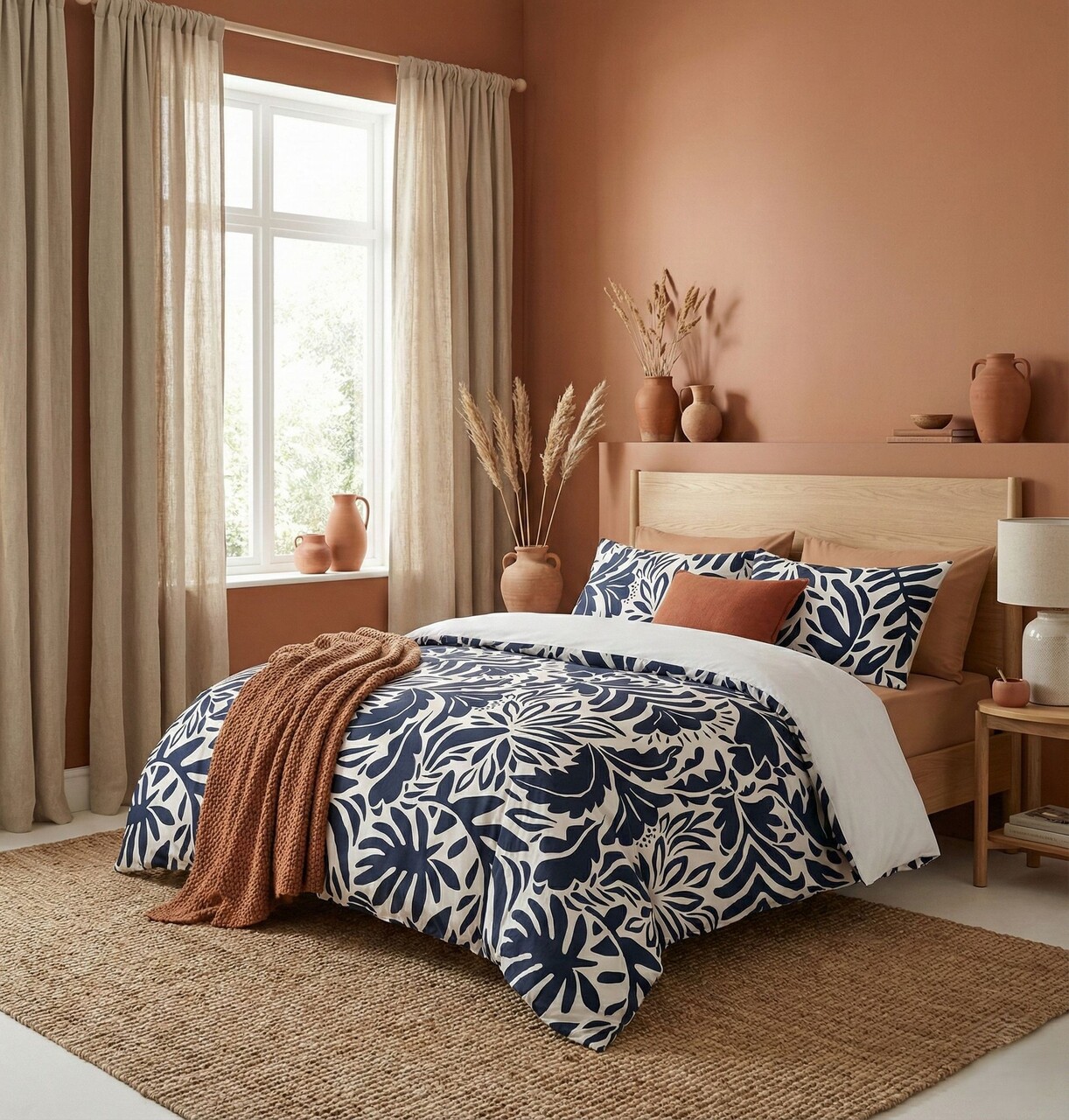 Lenjerie de pat dubla Super King (FR), 3 piese, L'essentiel Maison, Mediterranean Blue, Bumbac;Poliester, Bleumarin/Alb