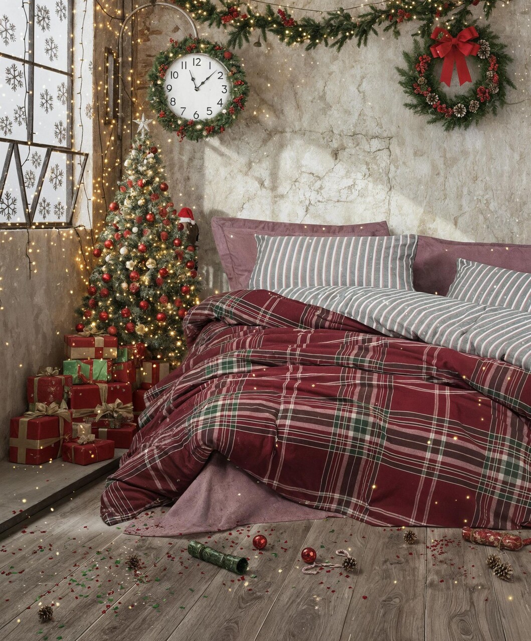 Lenjerie de pat dubla Super King (FR), 3 piese, L'essentiel Maison, Pledd, Rosu claret