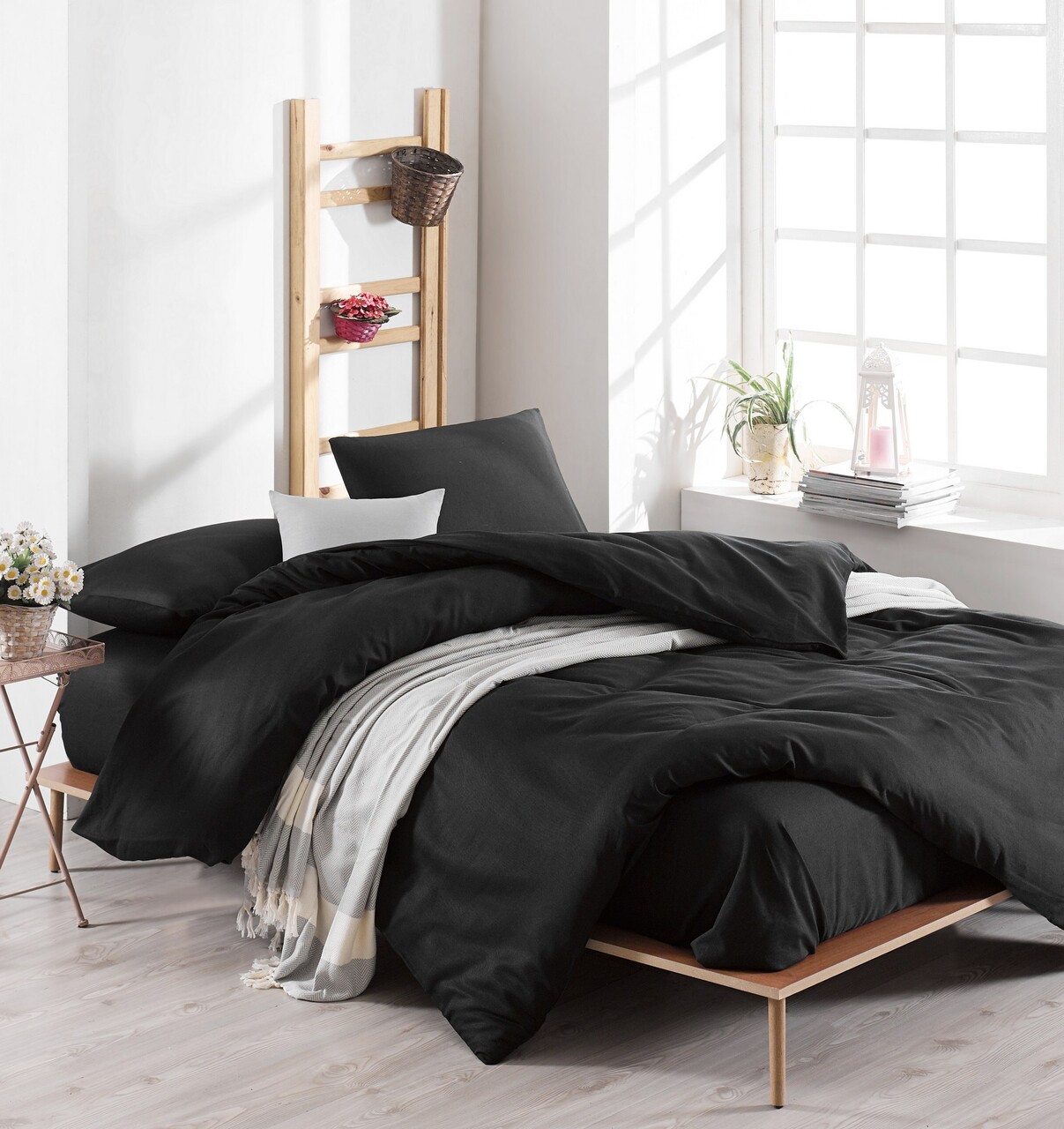 Lenjerie de pat dubla Super King (FR), 3 piese, L'essentiel Maison, Solid, Negru