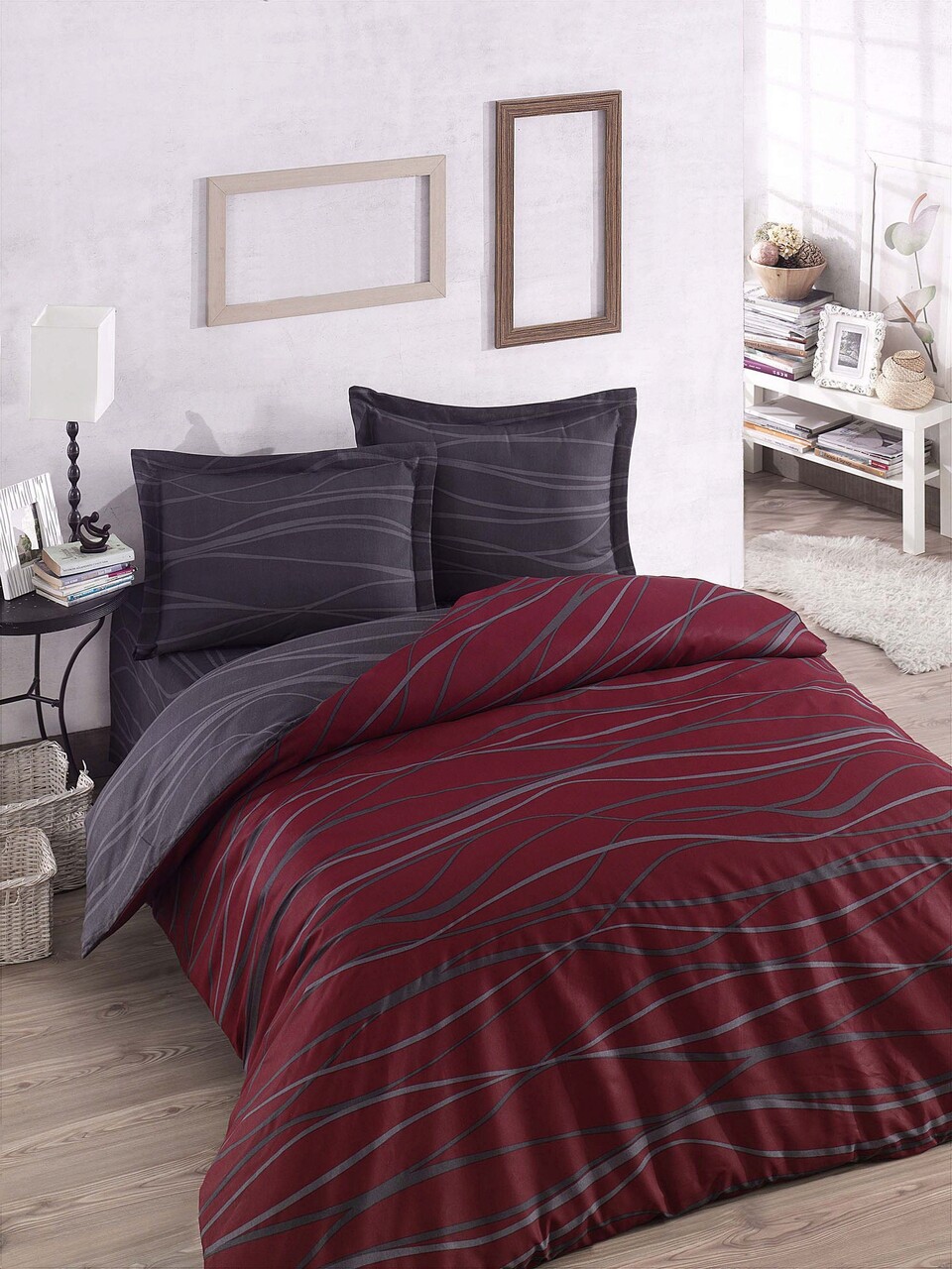 Lenjerie de pat dubla Super King (FR), 3 piese, L'essentiel Maison, Verda, Roșu Claret / Antracit