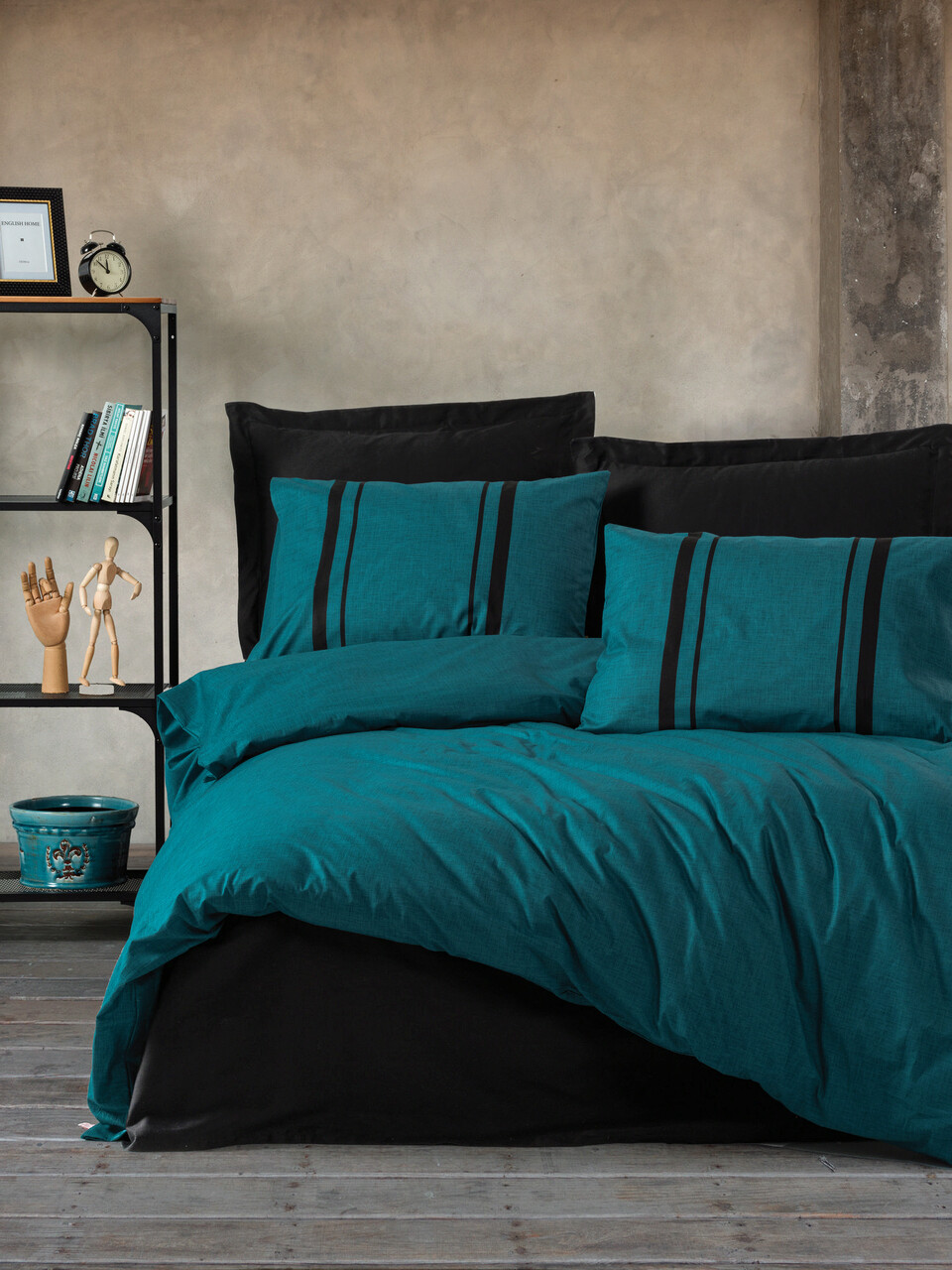 Lenjerie de pat dubla Super King (FR), Bitter - Petrol Blue, Cotton Box, Bumbac Ranforce