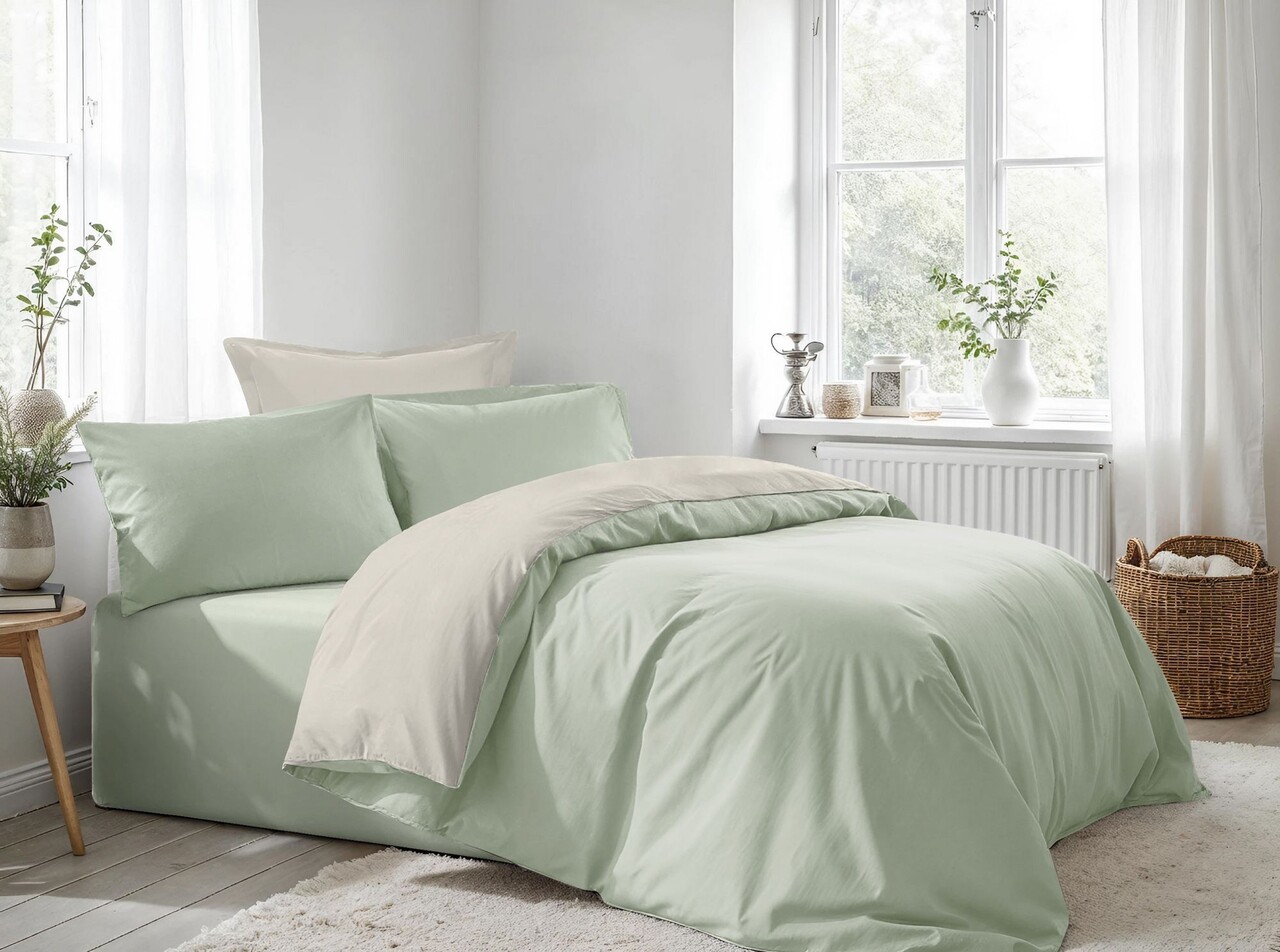 Lenjerie de pat dubla Super King (FR), L'essentiel Maison, Light Green, Crem, Verde deschis, Crem
