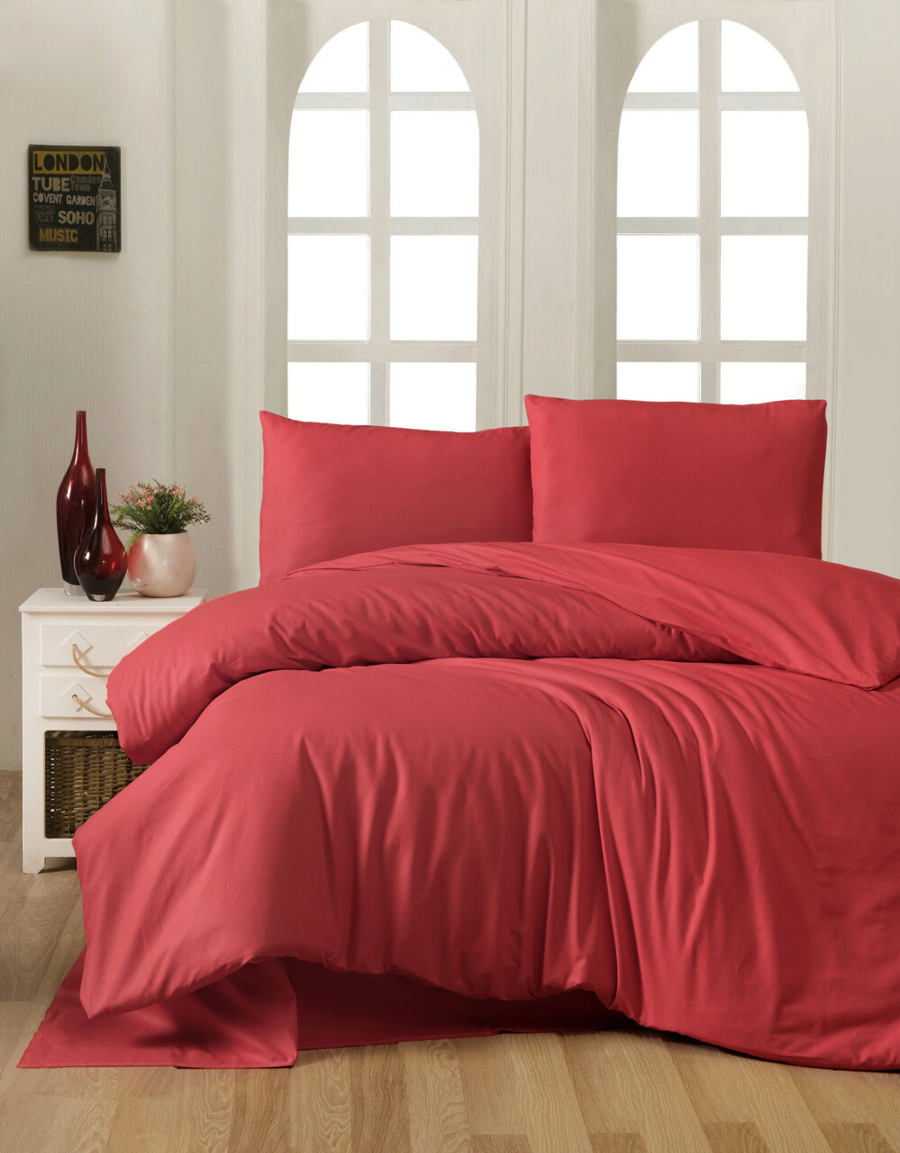 Lenjerie de pat dubla Super King (FR), Red, Patik, Bumbac Ranforce