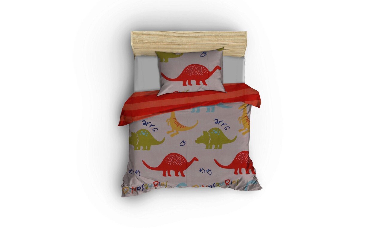 Lenjerie de pat dubla Super King (US) (ES), 3 piese, Dinazorus - White, Eponj Home, 65% bumbac/35% poliester