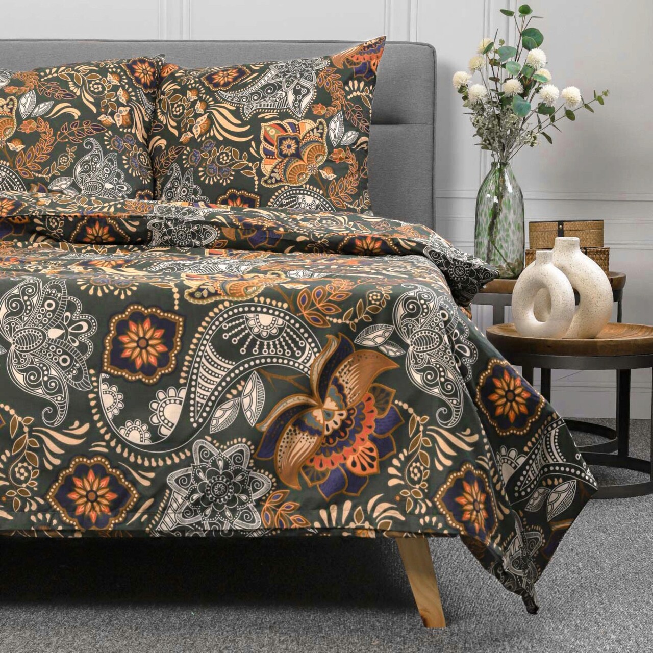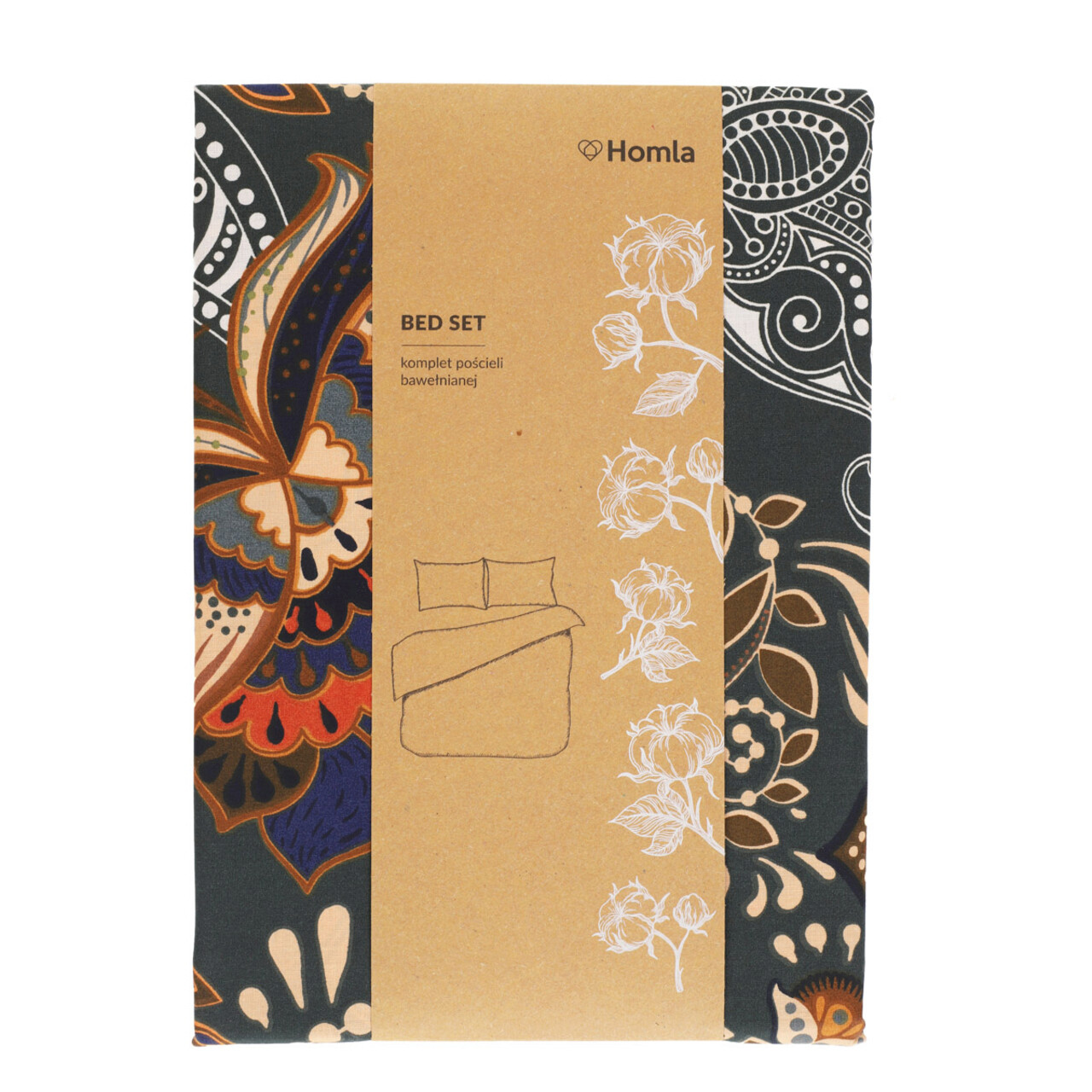 Lenjerie de pat dubla Tapua, Homla, 3 piese, 160x200 cm, 70x80 cm, bumbac, multicolor