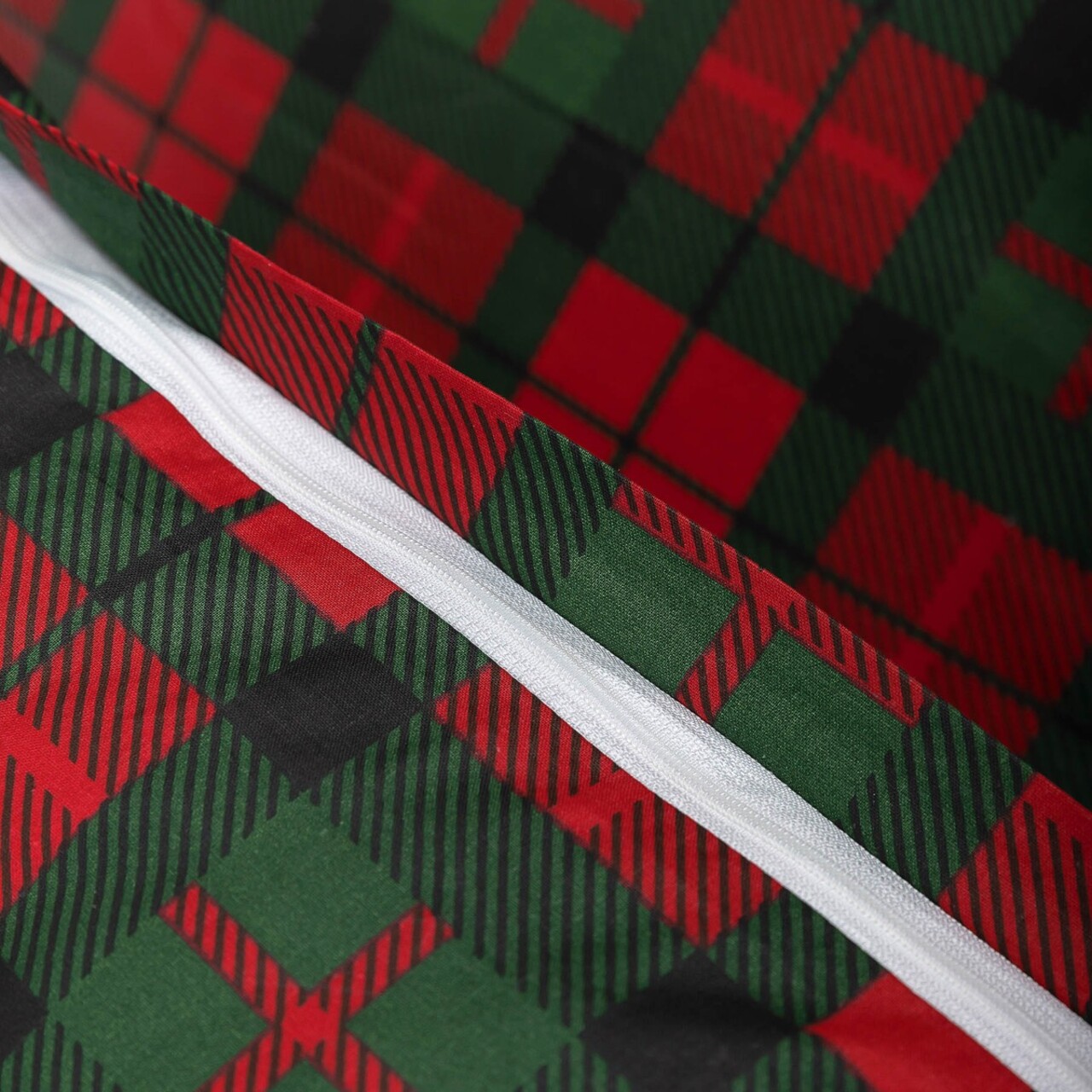 Lenjerie de pat dubla Tartan, Homla, 3 piese, 160x200 cm, bumbac, rosu/verde