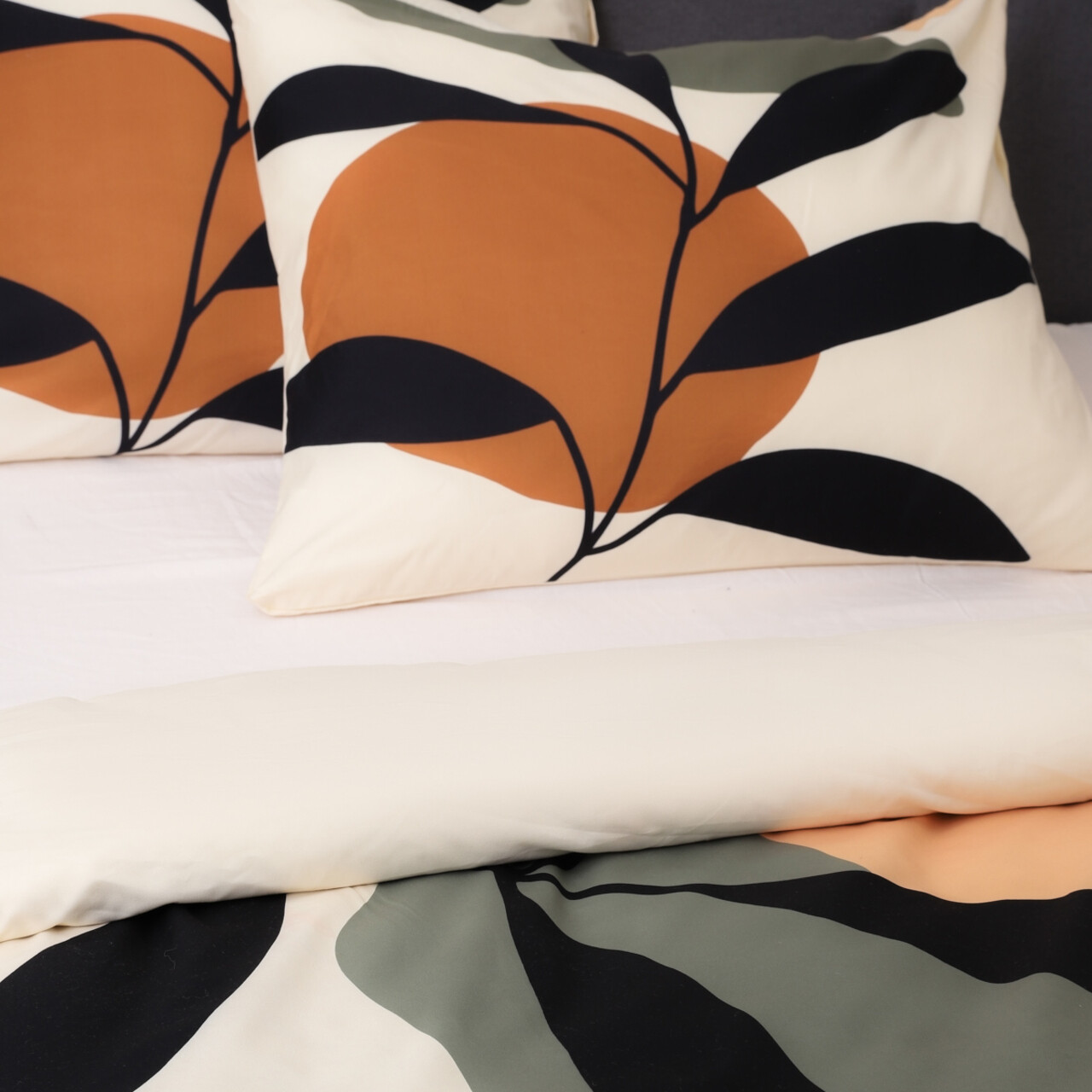 Setul TIERRA este format dintr-o husa de pilota cu dimensiunea 160x200 cm si doua fete de perna cu dimensiunea 70x80 cm.