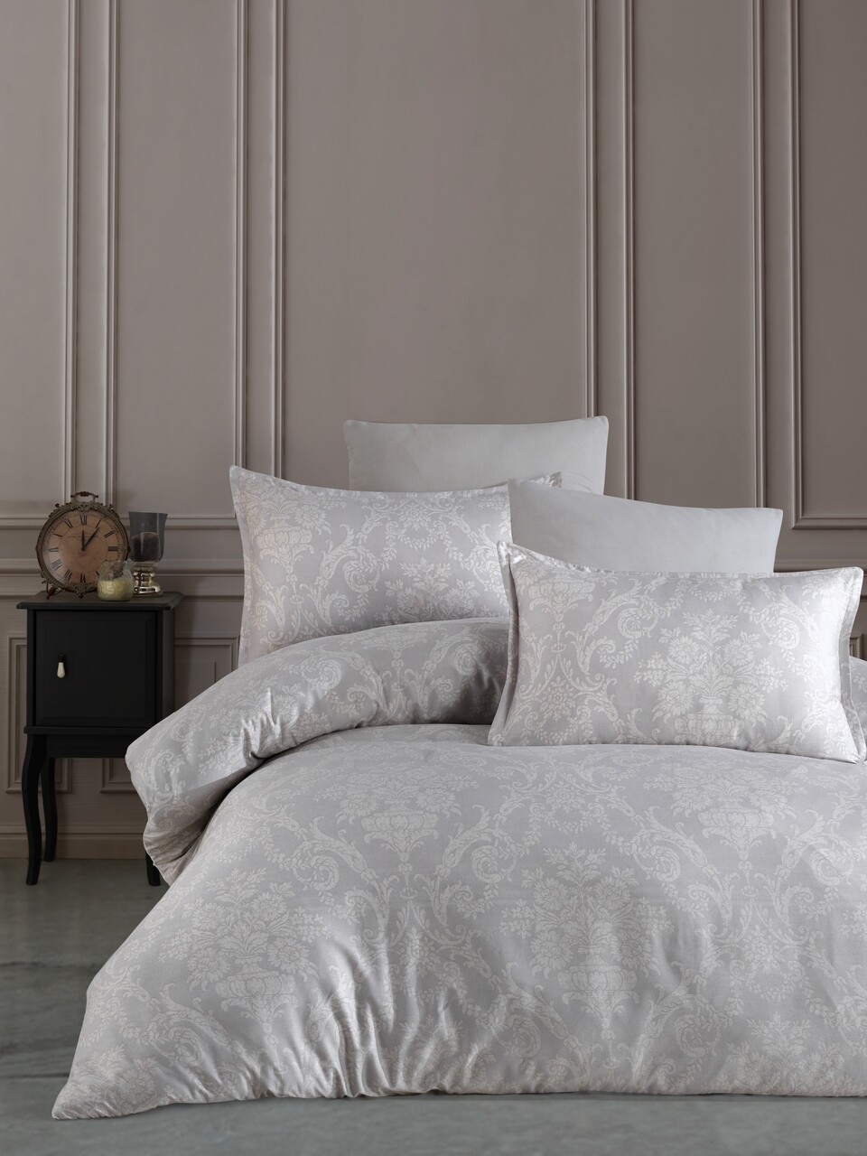 Lenjerie de pat dubla Vase V1, Majoli Home Collection, 4 piese, 240x260 cm, bumbac satinat