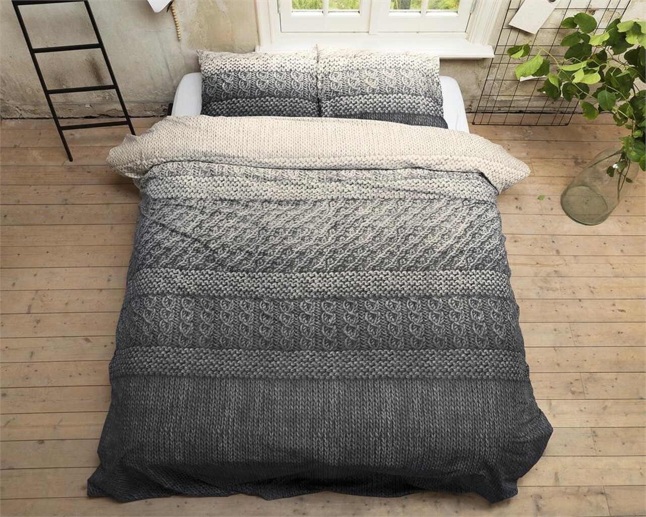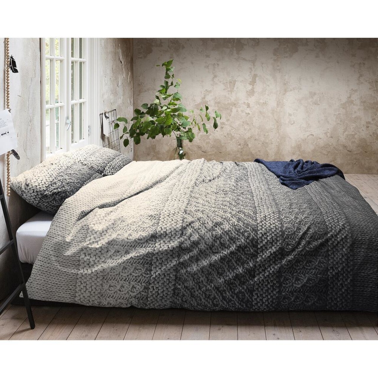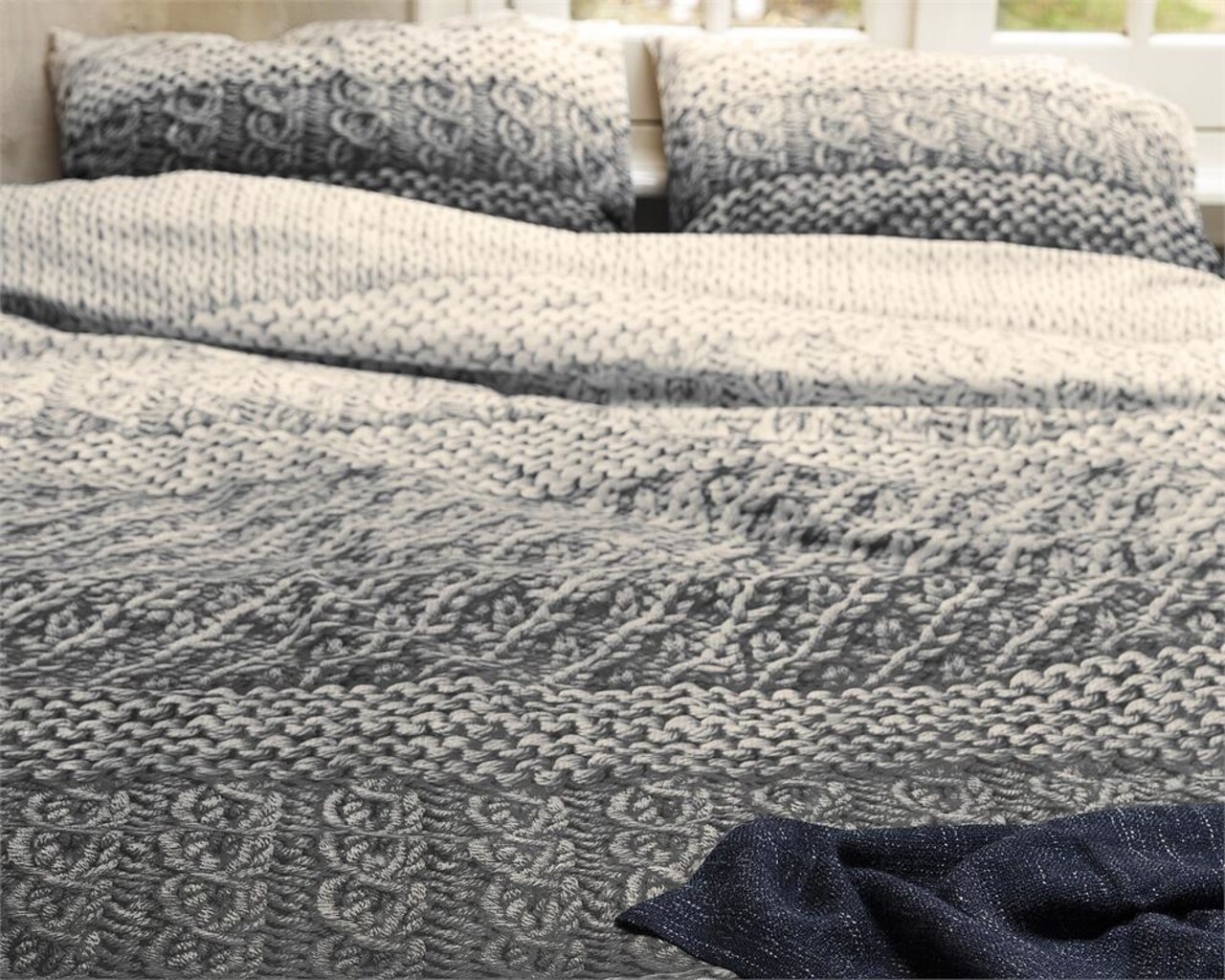 Lenjerie de pat dubla VELVET Indigo Knit Grey , Primaviera Deluxe, 3 piese, 200x220 cm, bumbac satinat, gri
