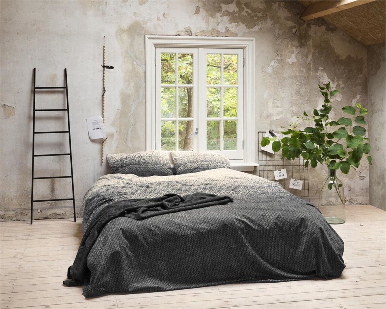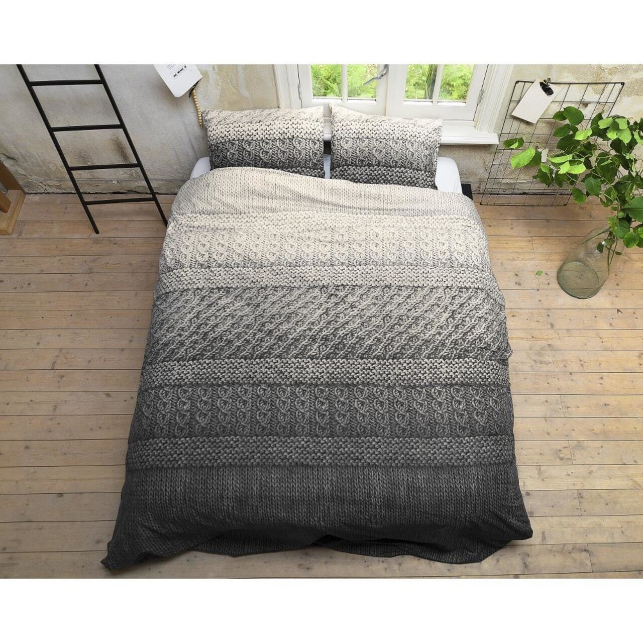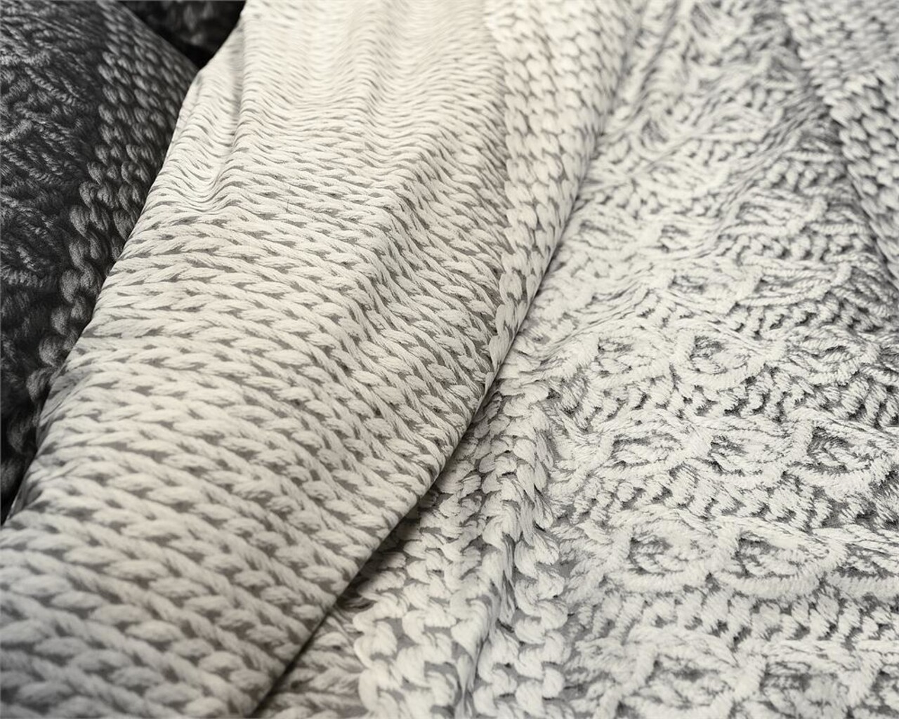 Lenjerie de pat dubla VELVET Indigo Knit Grey , Primaviera Deluxe, 3 piese, 200x220 cm, bumbac satinat, gri