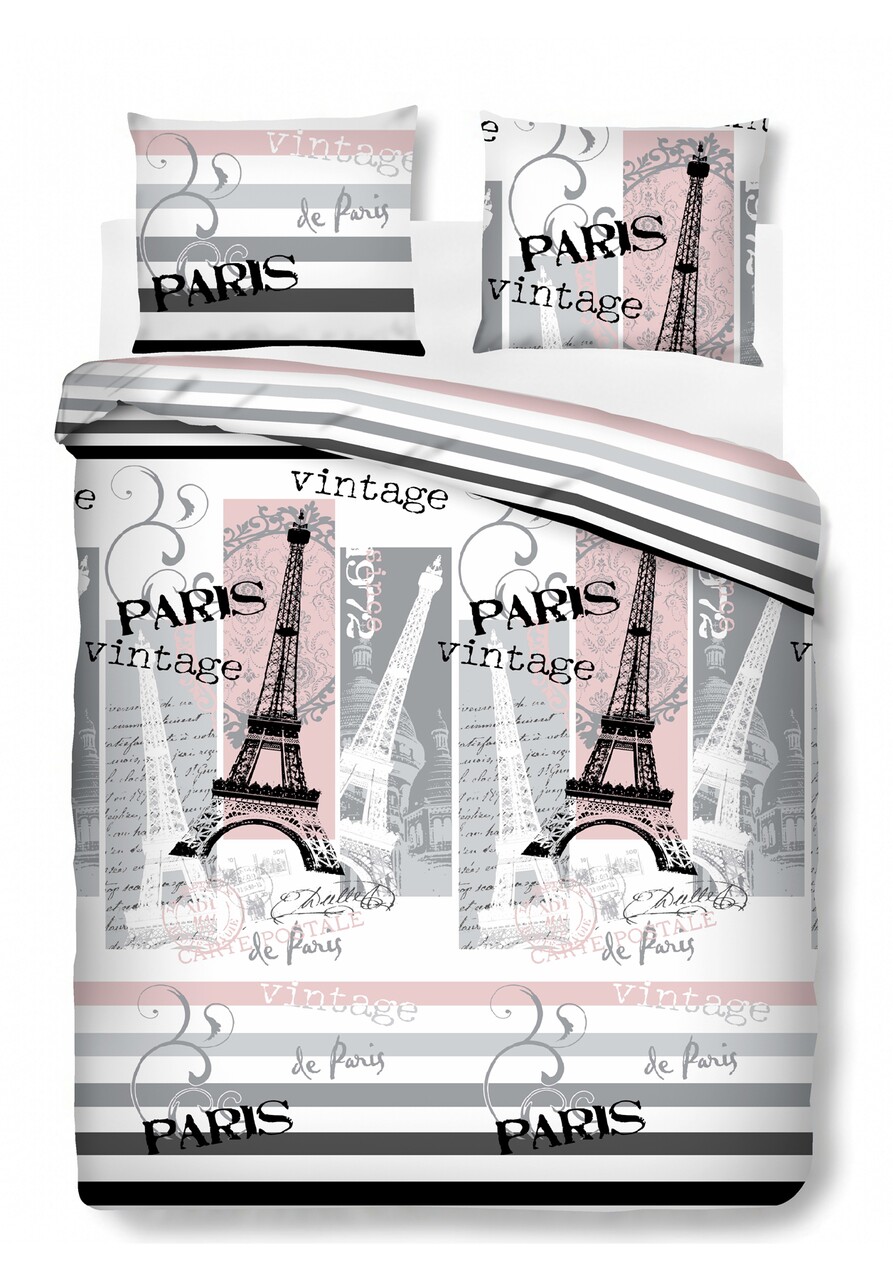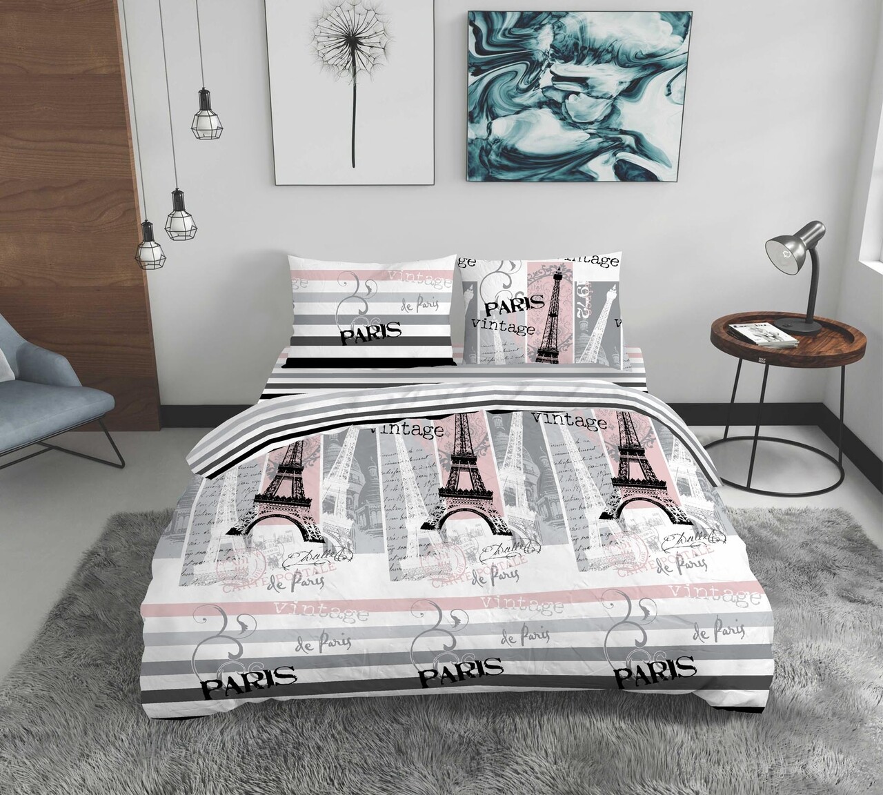Lenjerie de pat dubla, Vintage Paris, 4 piese, 200x220, 100% bumbac, multicolor