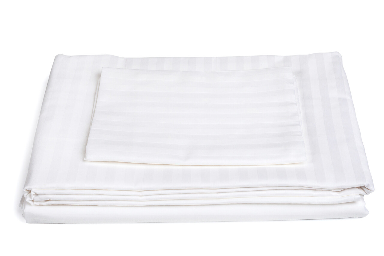 Lenjerie de pat Hotel Line, dubla, 210x230 cm, amestec bumbac, satin, 250 TC, alb, cu dungi 1 cm