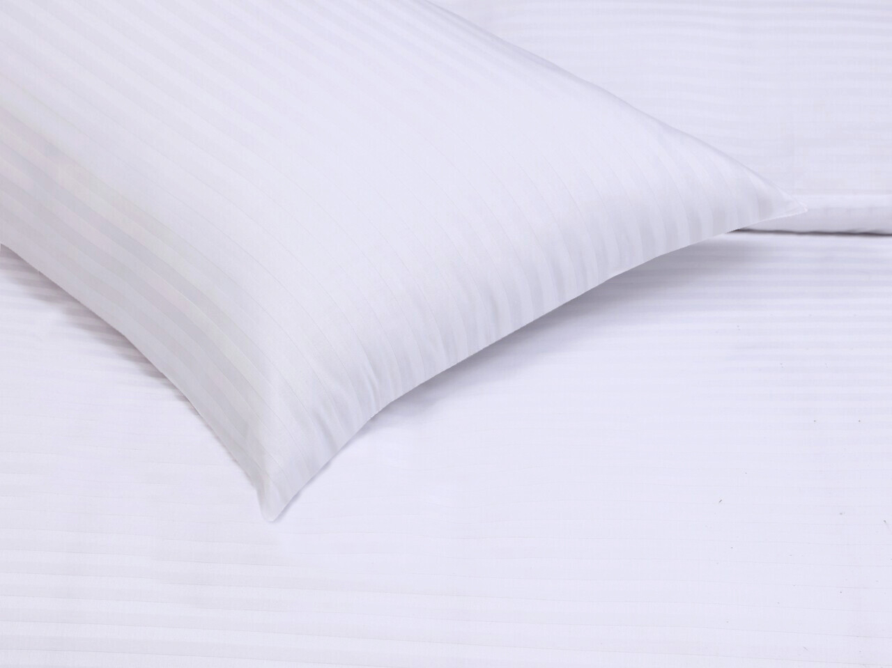 Lenjerie de pat Hotel Line, pentru o persoana, amestec bumbac, satin, 250 TC, alb, cu dungi 1 cm