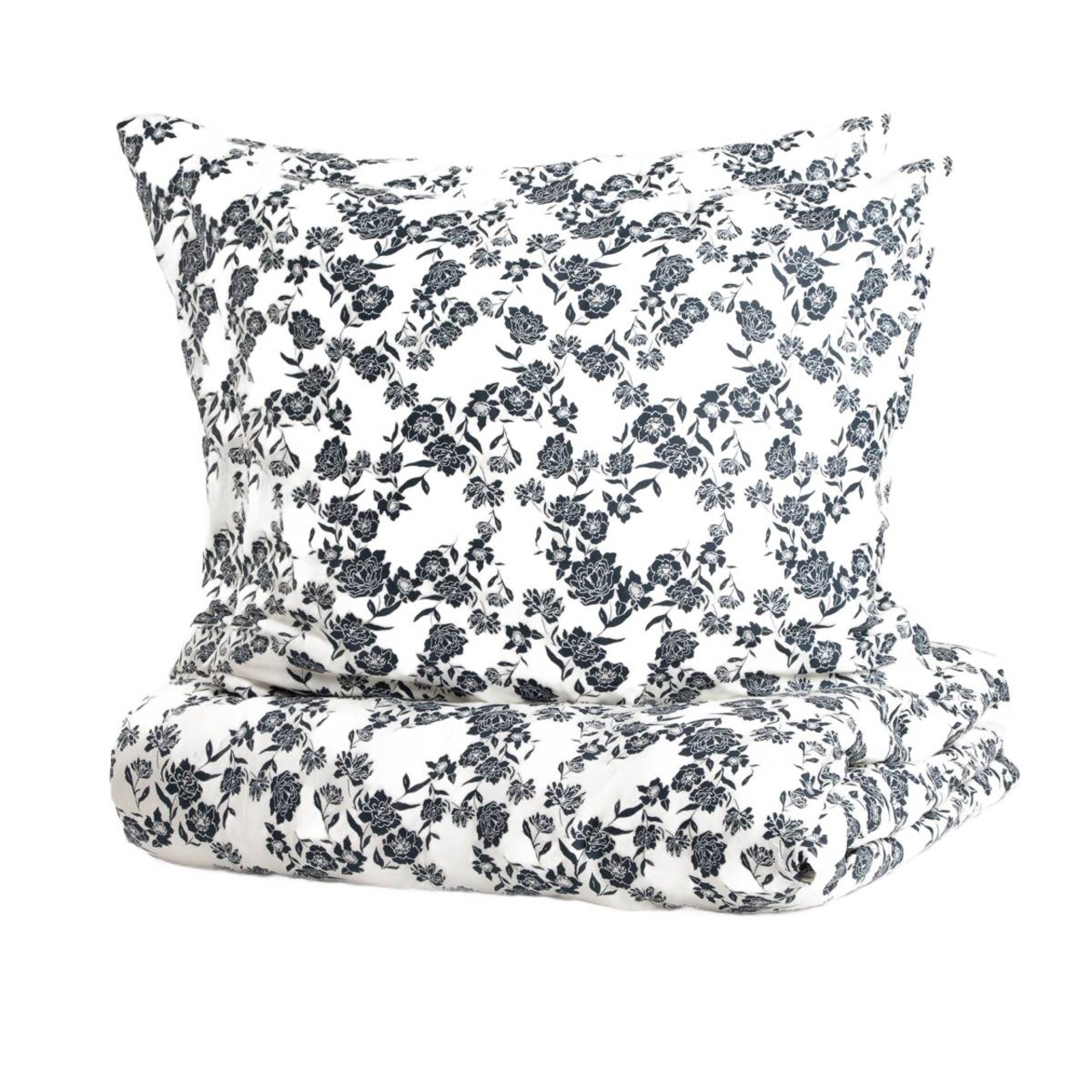 Setul FLORAL HAMPTONS este format dintr-o husa de pilota cu dimensiunea 200x220 cm si doua fete de perna cu dimensiunea 70x80 cm.