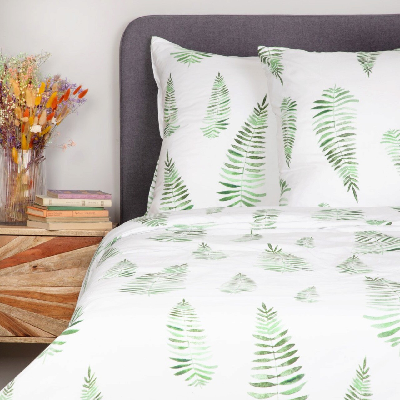 Lenjerie de pat King Size, Herve, Homla, 3 piese, 200x220 cm, microfibra din poliester, alb/verde