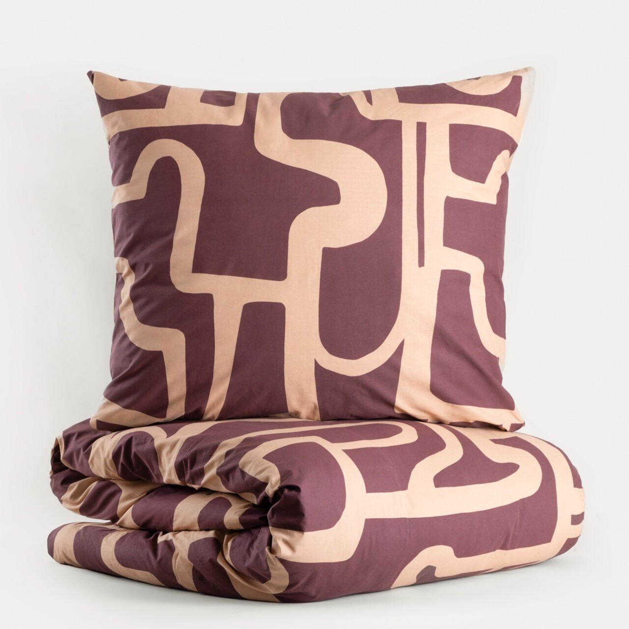 Lenjerie de pat King Size, Karmen, Homla, 3 piese, 200x220 cm, bumbac, visiniu/bej