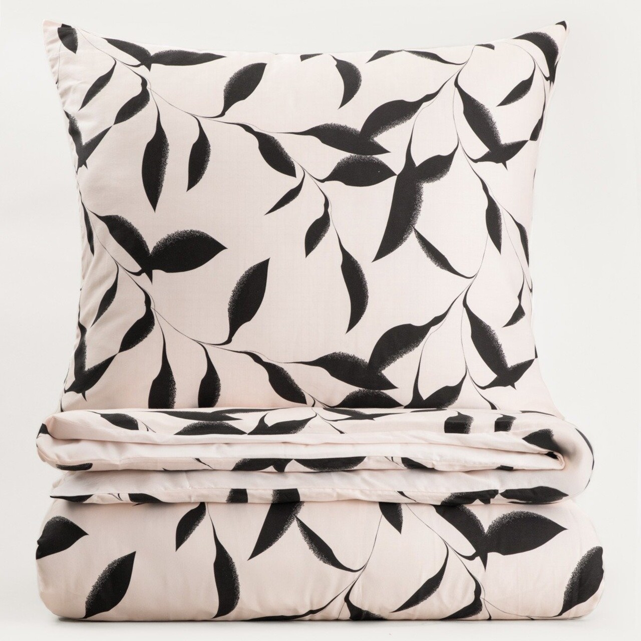 Lenjerie de pat King Size, Lydia, Homla, 3 piese, 200x220 cm, bumbac satinat, bej/negru