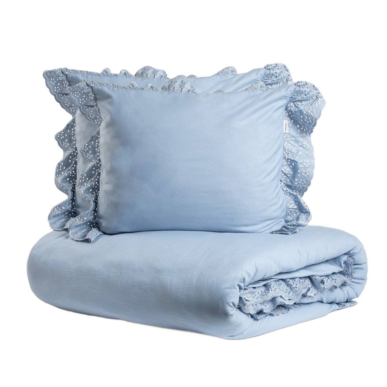Lenjerie de pat King Size, Morain, Homla, 3 piese, 200x220 cm, microfibra din poliester, albastru