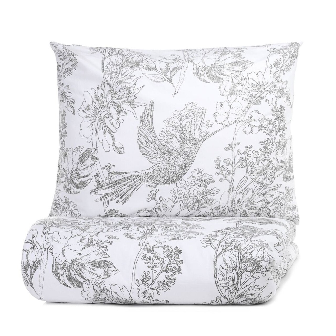 Lenjerie de pat King Size, Morales, Homla, 3 piese, 200x220 cm, bumbac, alb/gri