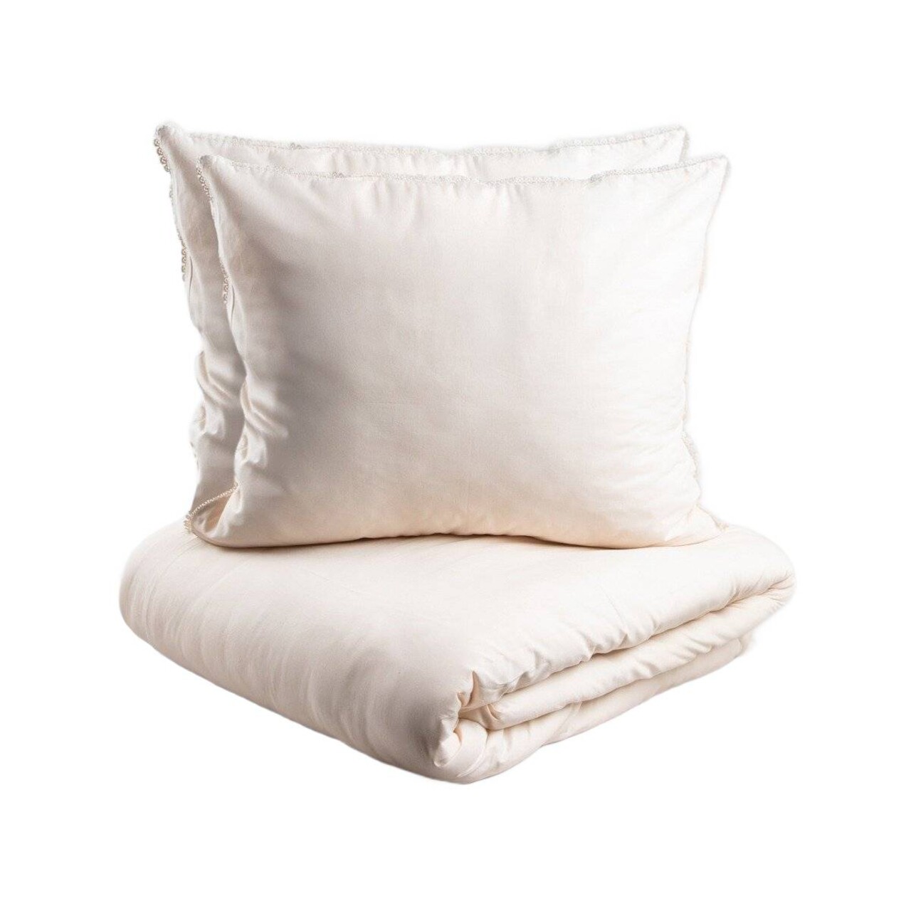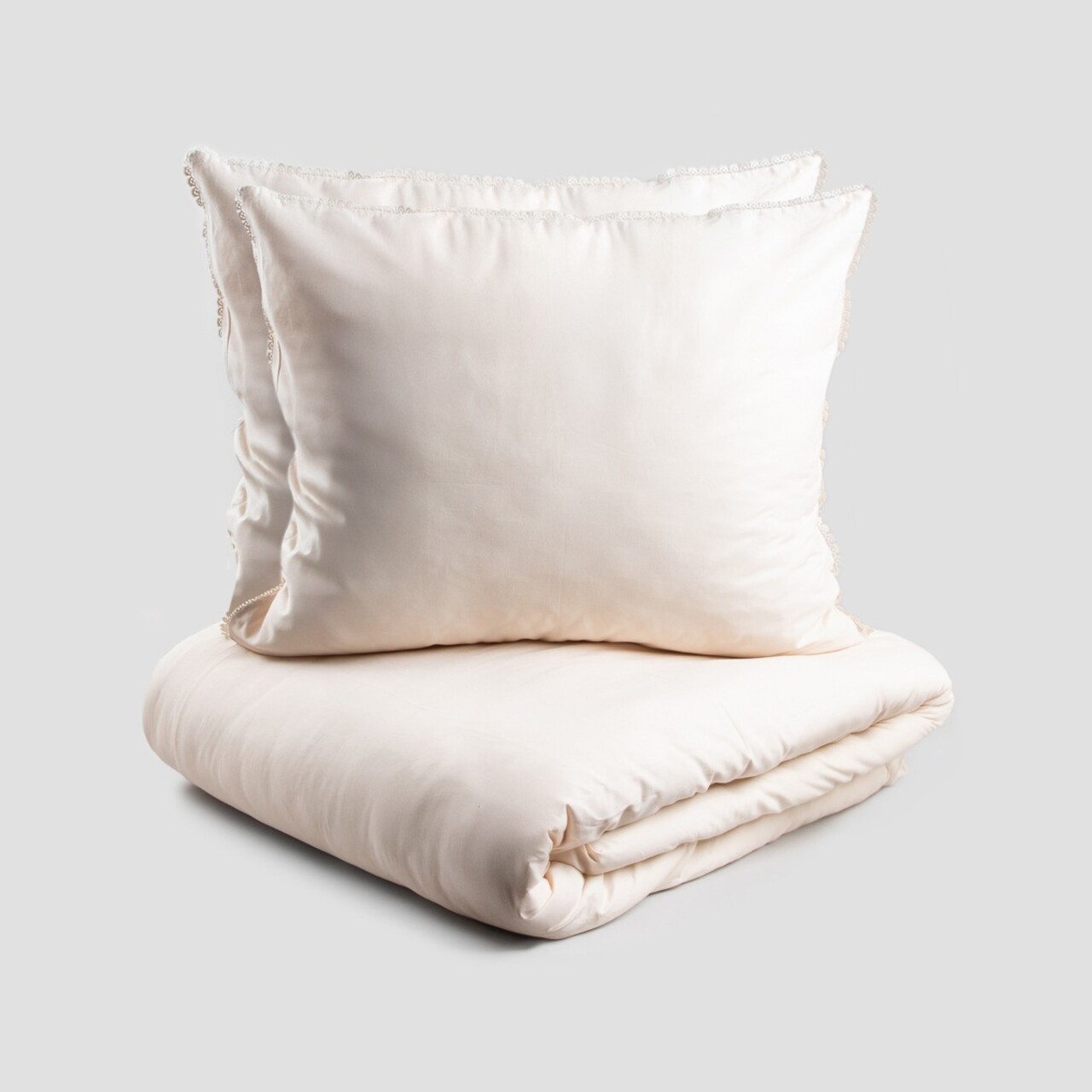 Setul NERINIA este format dintr-o husa de pilota cu dimensiunea 200x220 cm si doua fete de perna cu dimensiunea 70x80 cm.