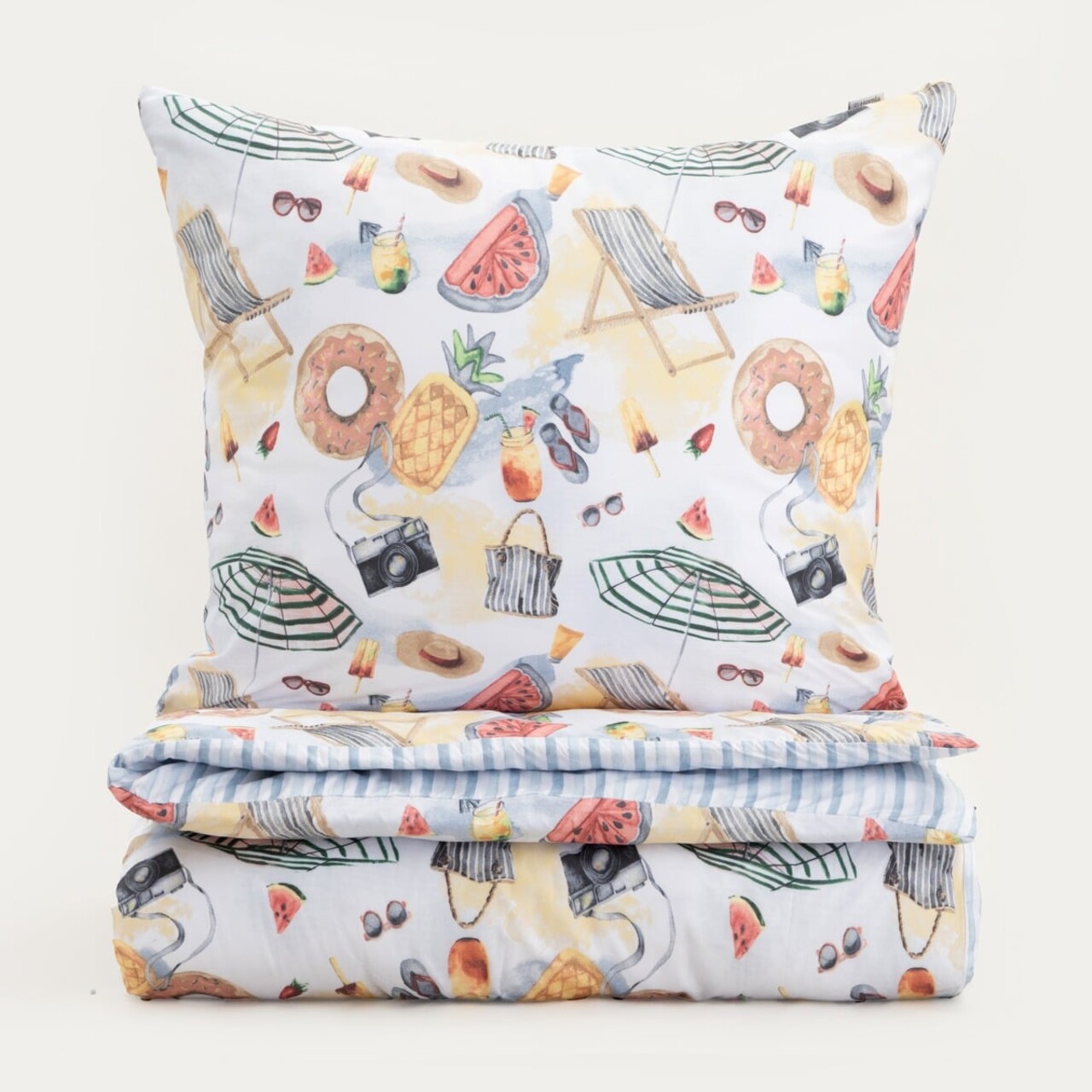 Setul PLAYA este format dintr-o husa de pilota cu dimensiunea 200x220 cm si doua fete de perna cu dimensiunea 70x80 cm.