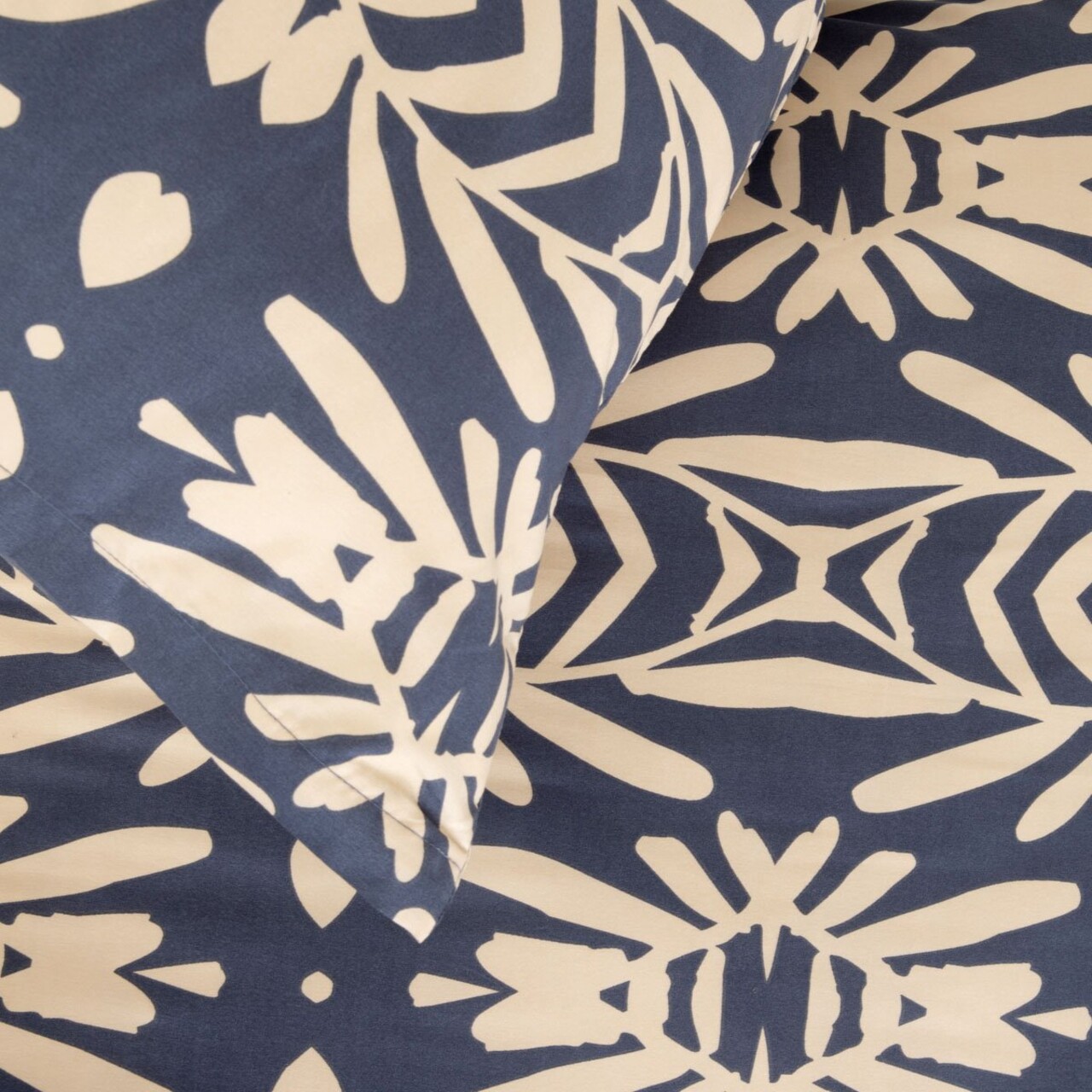 Lenjerie de pat King Size, Quevy, Homla, 3 piese, 200x220 cm, microfibra din poliester, albastru/bej