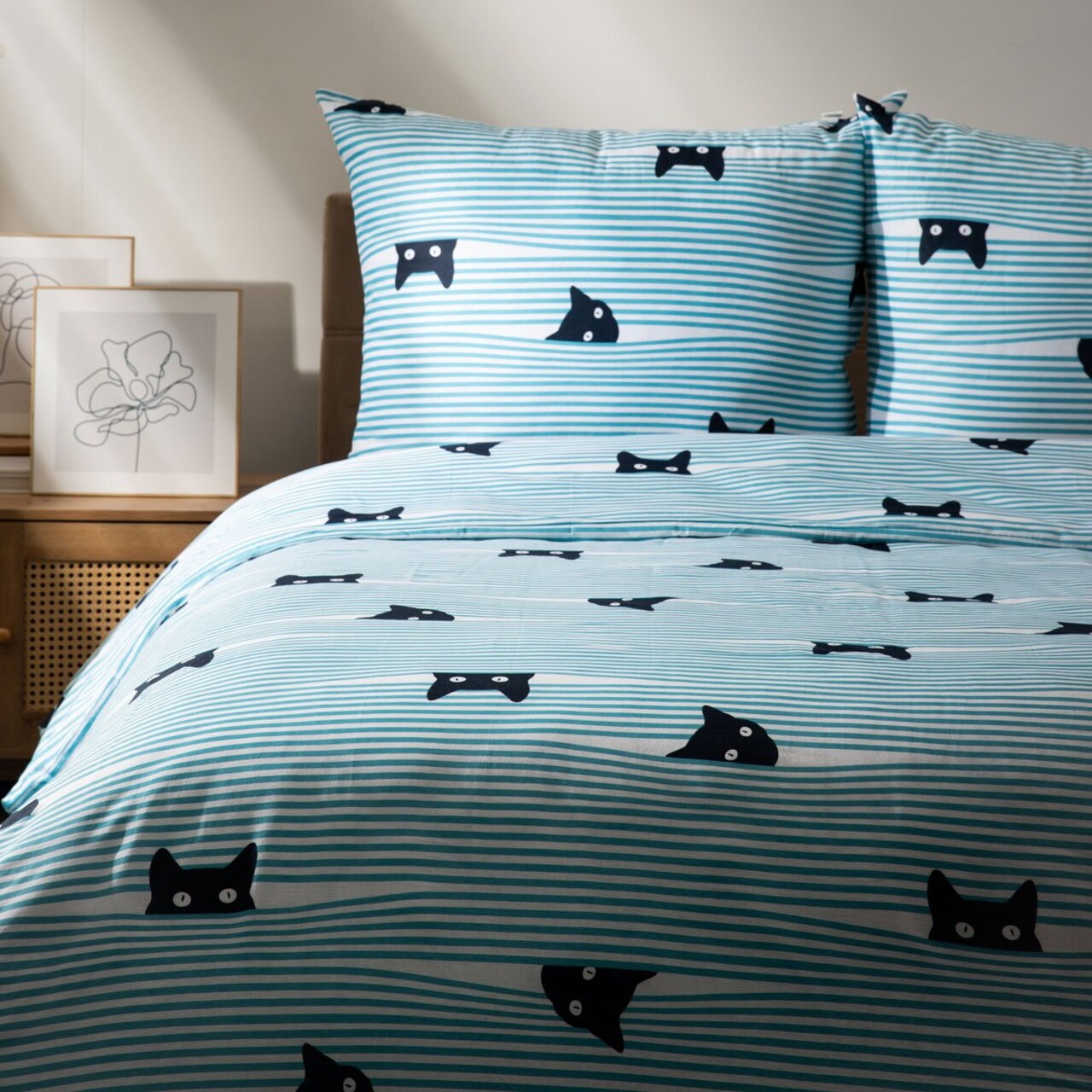 Lenjerie de pat King Size, Sirius, Homla, 3 piese, 200x220 cm, bumbac, albastru/negru