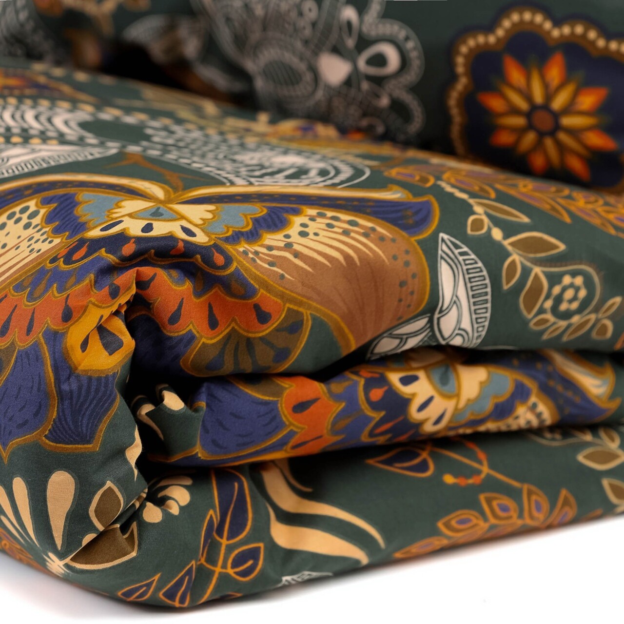 Lenjerie de pat King Size, Tapua, Homla, 3 piese, 200x220 cm, 70x80 cm, bumbac, multicolor