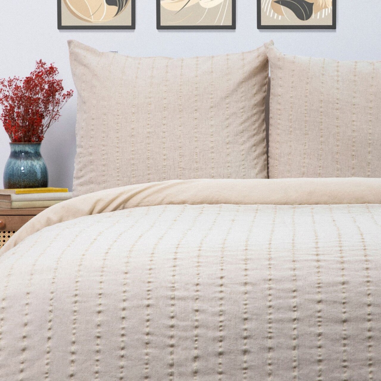 Lenjerie de pat King Size, Tiarel, Homla, 3 piese, 200x220 cm, bumbac/in, bej/auriu