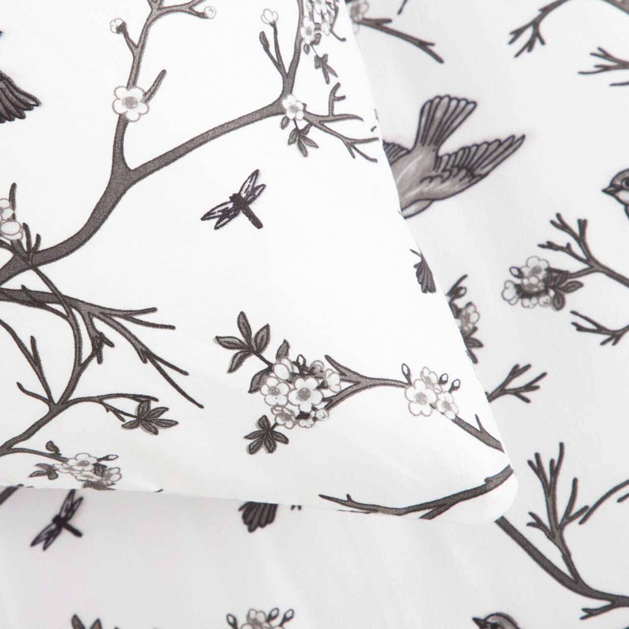 Lenjerie de pat King Size, Volatile, Homla, 3 piese, 200x220 cm, microfibra din bumbac, alb/gri