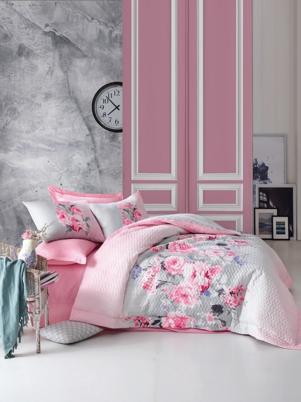 Lenjerie de pat matlasata pentru 2 persoane, 4 piese, 100% bumbac ranforce, Cotton Box, Fiona