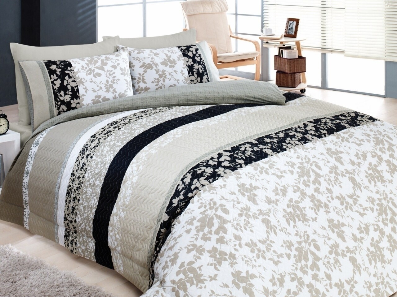 Lenjerie de pat matlasata pentru o persoana, 3 piese, 100% bumbac ranforce, Cotton Box, Deborah Beige