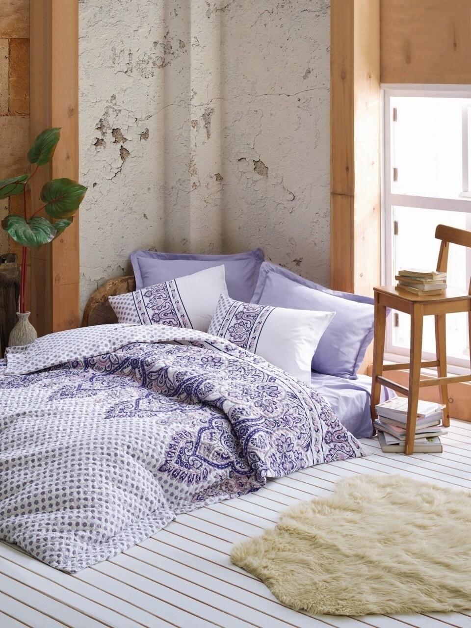 Lenjerie de pat matlasata pentru o persoana, 3 piese, 100% bumbac ranforce, Cotton Box, Vesta Lilac
