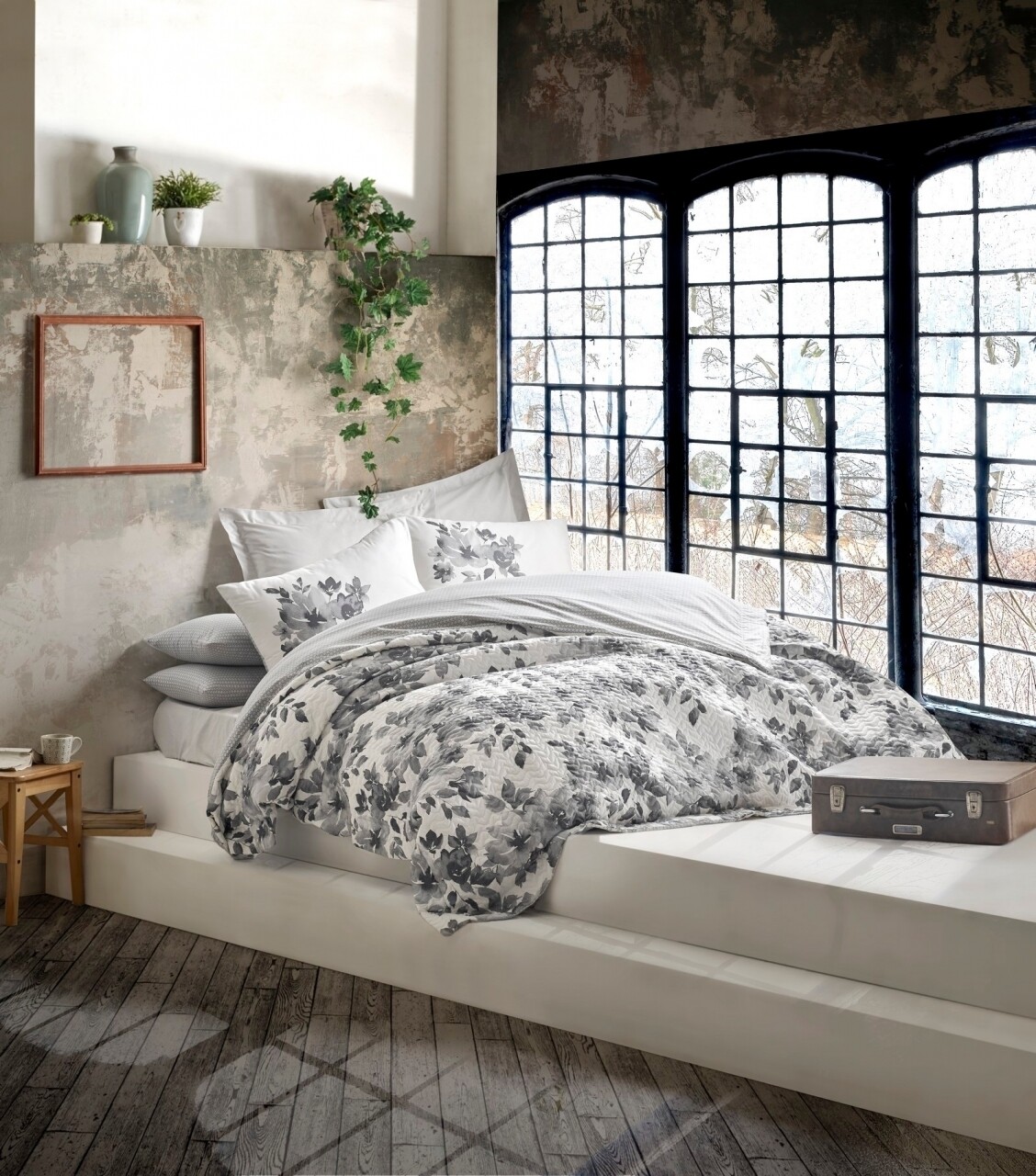 Lenjerie de pat matlasata pentru o persoana, 3 piese, 100% bumbac ranforce, Cotton Box, Volante Grey