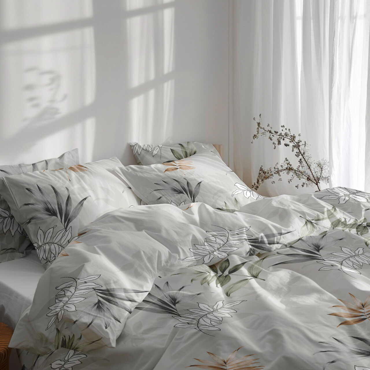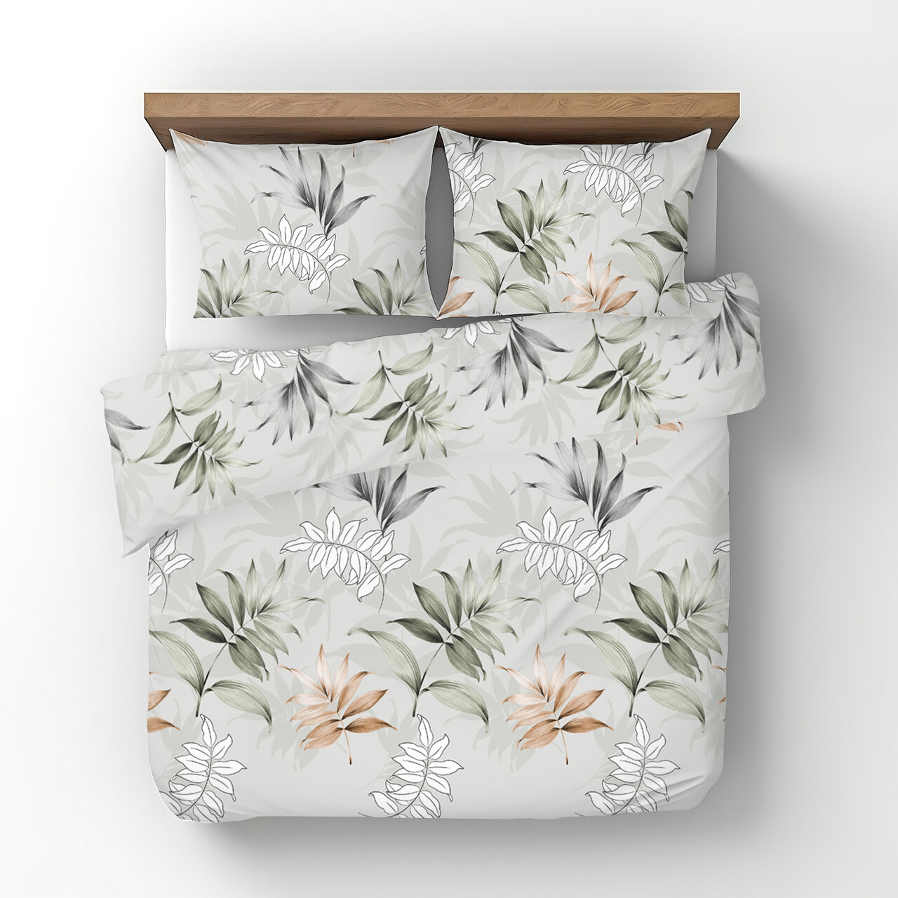 Lenjerie de pat pentru 2 persoane, Green Leaf, Bedora, 6 piese, 200x220, microfibra, multicolor