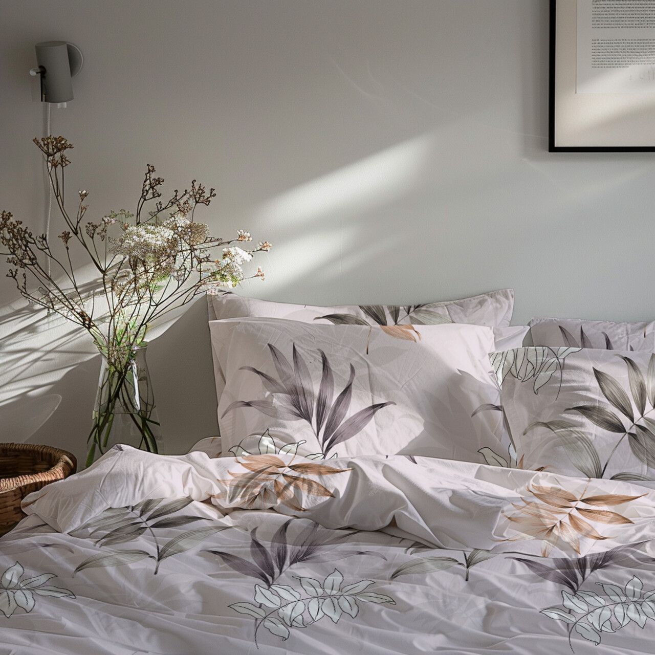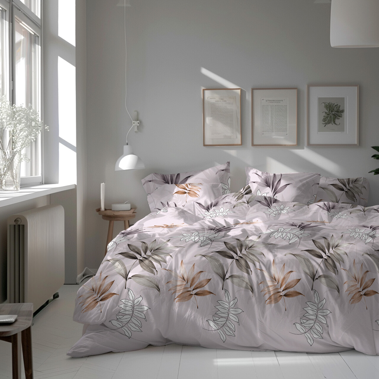 Lenjeria de pat dubla Bedora Grey Leaf contine 6 piese si cucereste cu imprimeul sau inspirat din natura. Materialul din care este realizat iti va oferi confortul de care ai nevoie indiferent de anotimp. Aceasta lenjerie te va transpune intr-o dulce visare iar dimineata te va gasi mai odihnit si mai revitalizat ca niciodata.